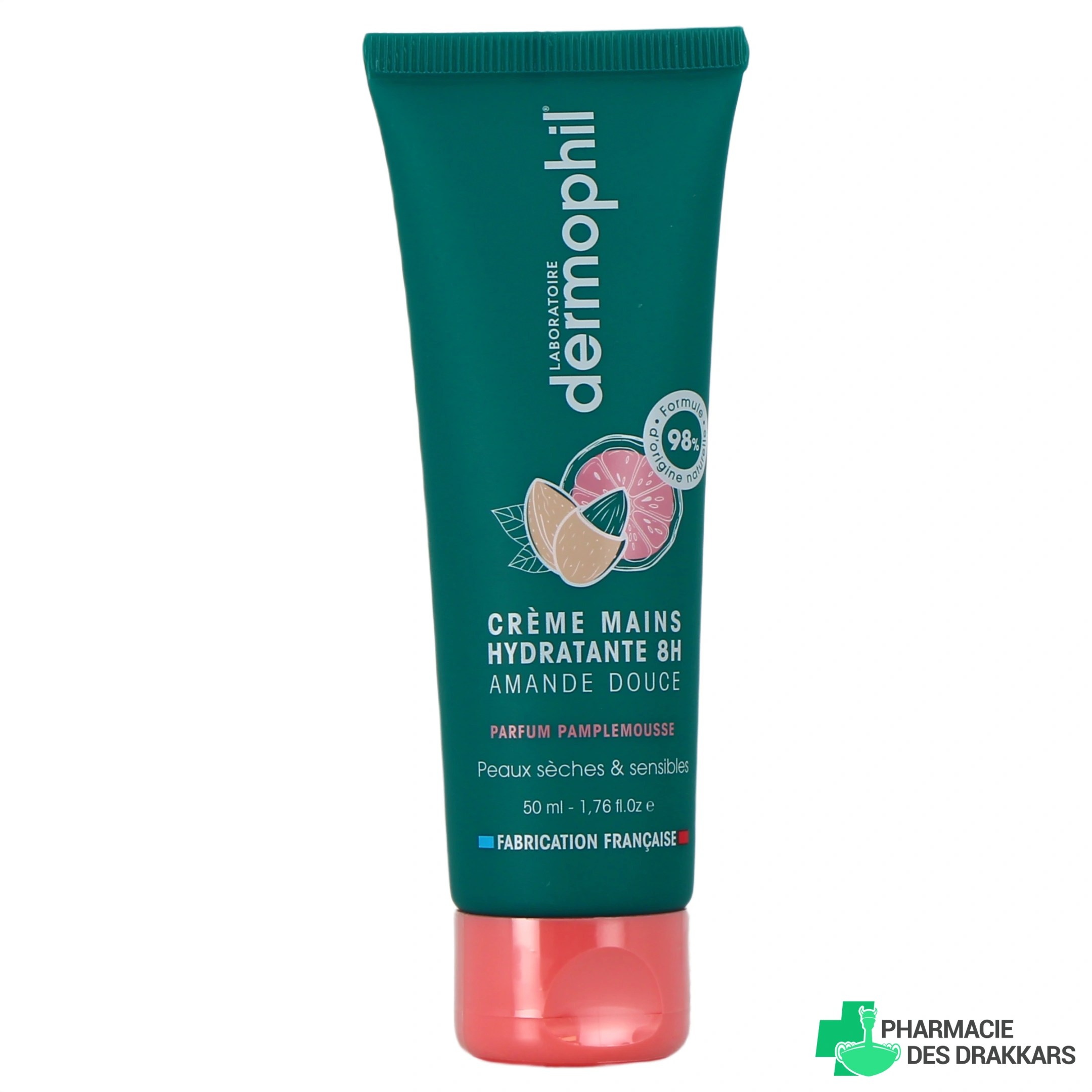 Tube de 50 ml de crème mains hydratante Bio Dermophil Amande douce - Parfum pamplemousse.