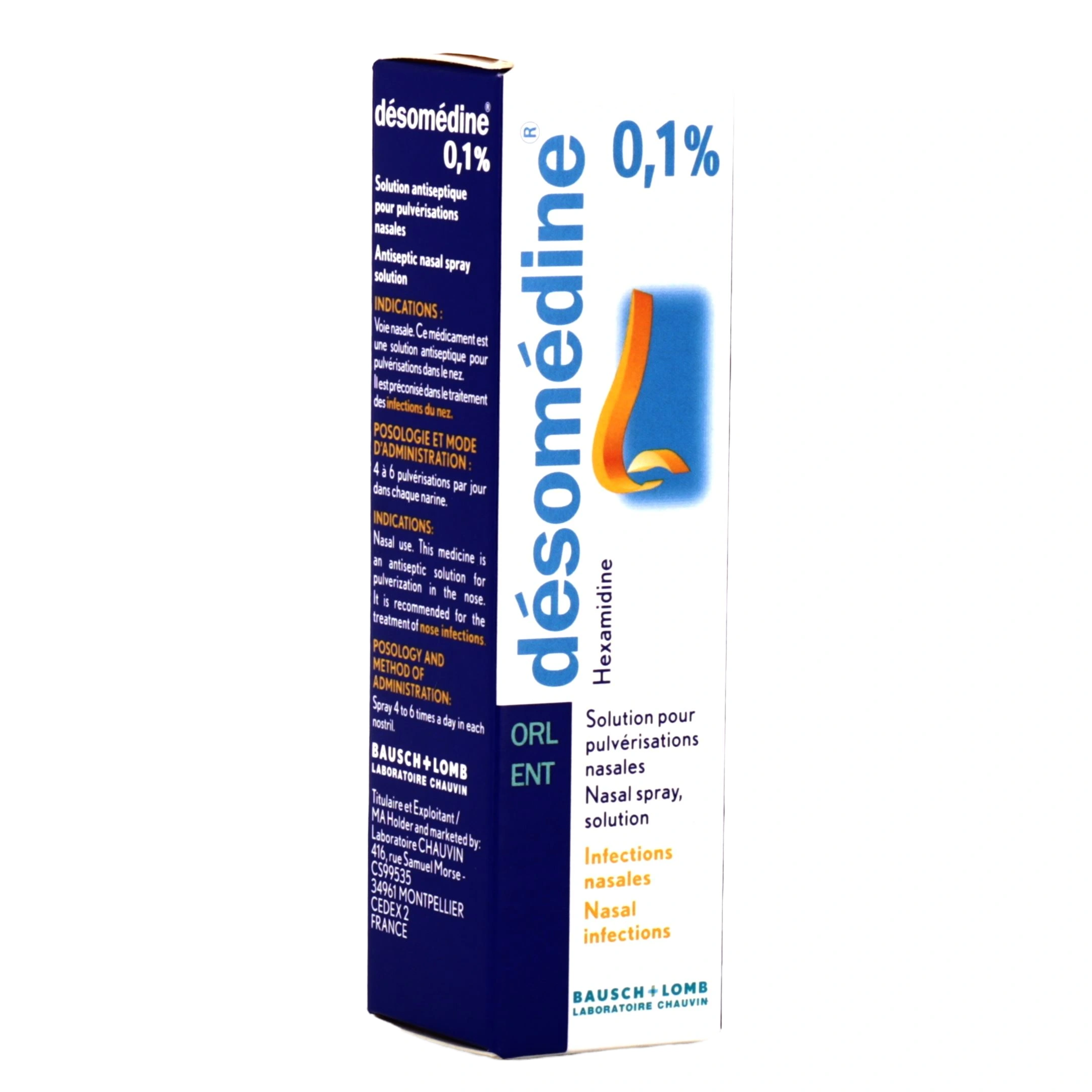 Désomédine est un médicament indiqué dans le traitement des infections bactériennes de l'œil (collyre) et des infections nasales (spray)