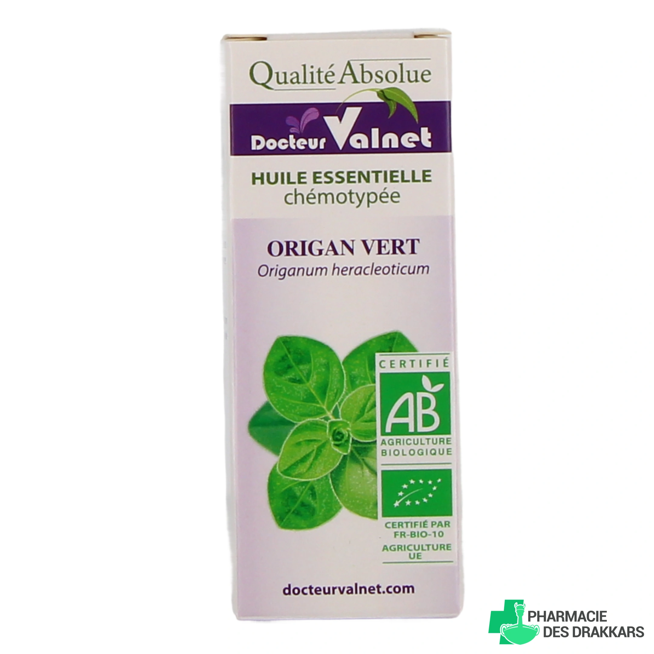 L'huile essentielle d'Origan vert du Docteur Valnet serait dotée de propriétés antivirales et bactéricides capables d'agir sur le système digestif. Elle peut être utilisée de différentes façons : appliquée en massage, elle pourrait contribuer à apaiser les douleurs causées par les rhumatismes, à faciliter l'élimination de la cellulite ou à agir contre la digestion difficile. En inhalation, l'huile essentielle d'Origan vert pourrait agir dans la lutte contre les infections ORL. Elle peut servir de condiment pour aromatiser et rendre les plats plus digestes lorsqu'elle est utilisée dans l'alimentation.