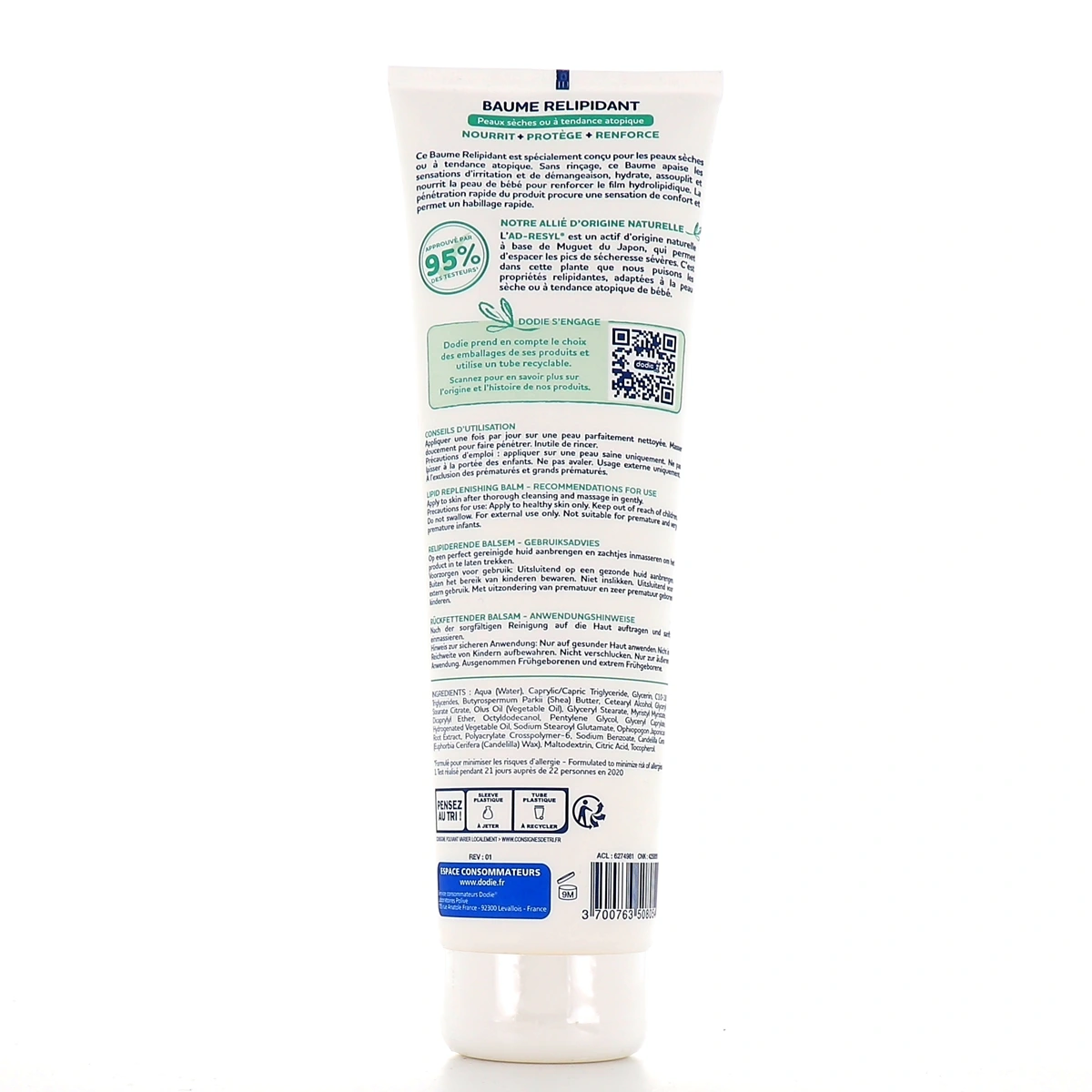 Efficacité cliniquement prouvée. Tolérance testée par des dermatologues et des pédiatres. Testé et approuvé par l'association française de l'eczéma. Étui recyclable à recycler.