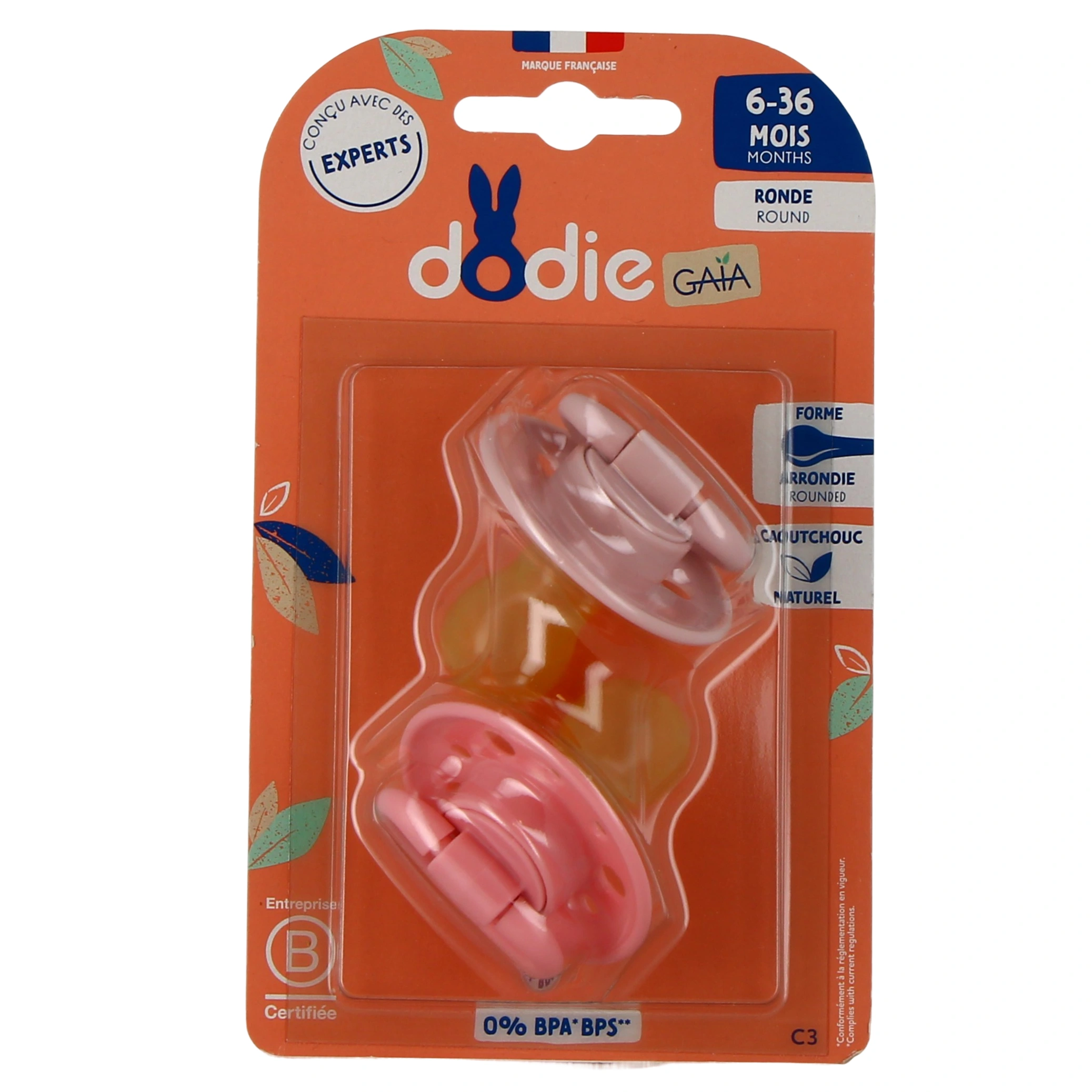 - La sucette Gaïa Dodie est une sucette ronde qui accompagnera bébé jusqu'à 36 mois ! Elle est fabriquée en caoutchouc naturel et sa téterelle s'inspire du sein maternel. Avec son look vintage, elle plaira surtout aux parents nostalgiques des premiers modèles de sucette pour bébé.