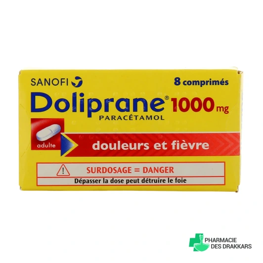 - Doliprane 1000 Comprimé boîte de 8, sous plaquette thermoformée ;