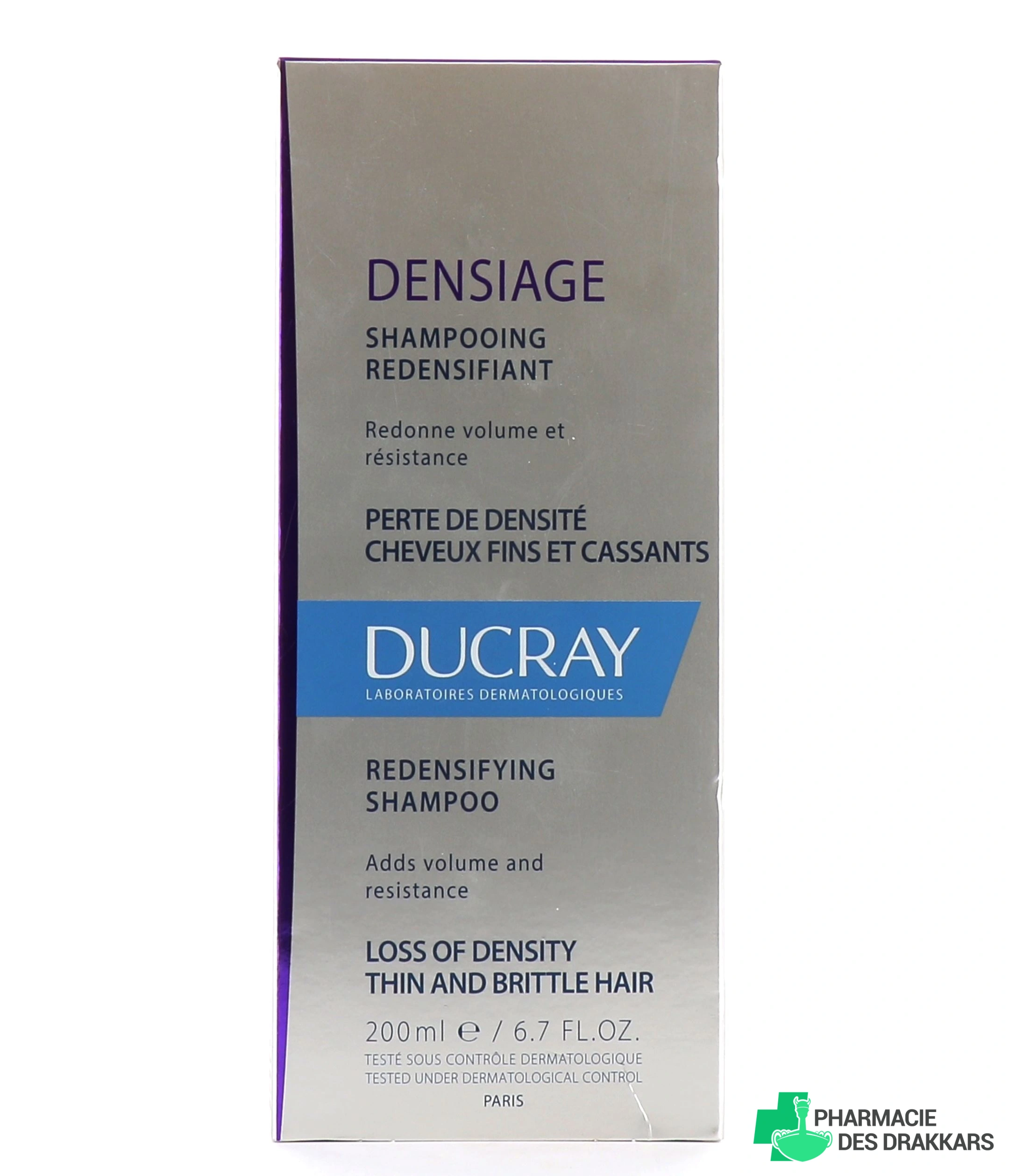 Conditionnement proposé par votre pharmacie en ligne : flacon de 200 ml de shampooing redensifiant Ducray Densiage.
