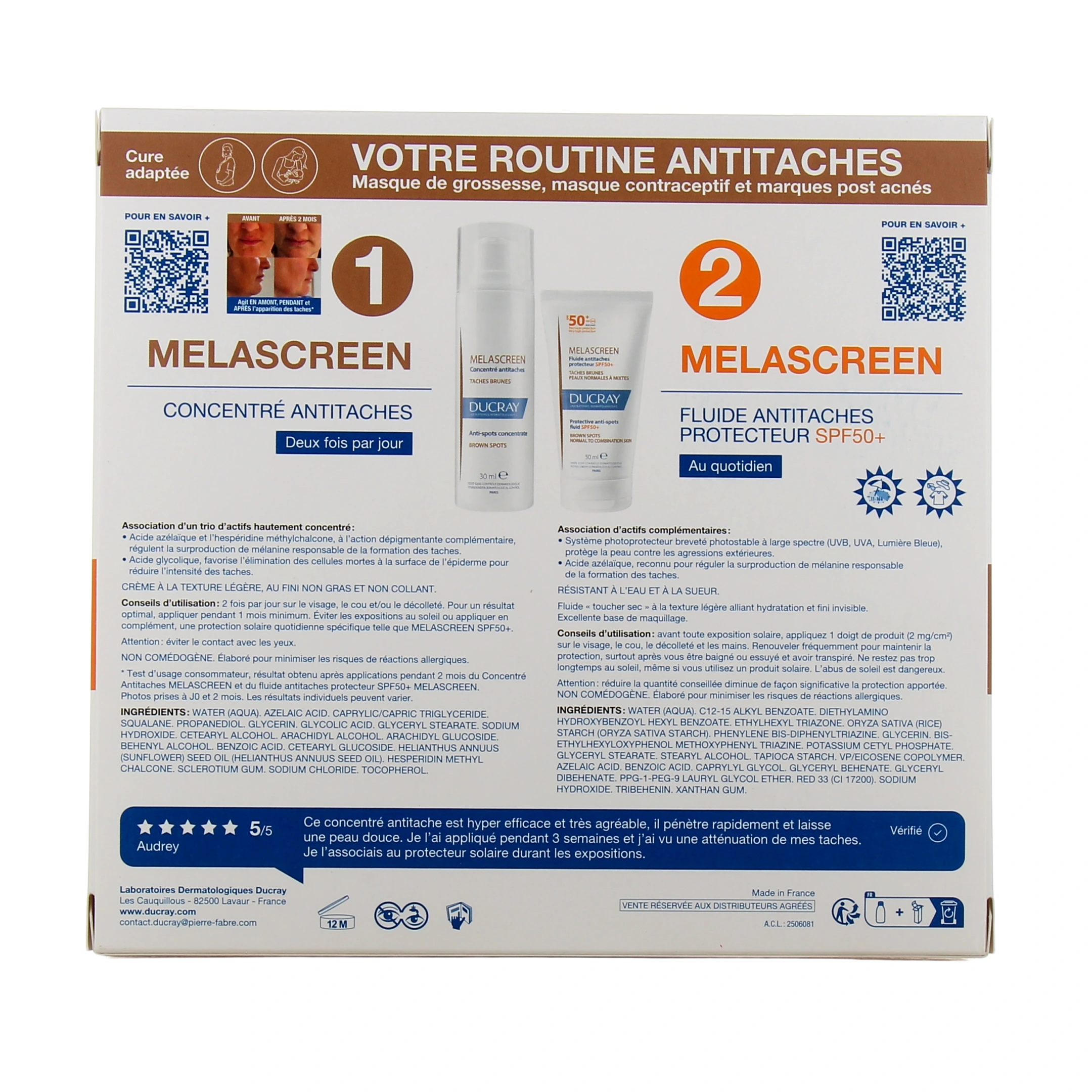 Le concentré antitaches Melascreen est un soin antitaches conçu par les laboratoires Ducray. Il convient à tous les types de peau et offre une action ciblée sur les taches brunes pour vous aider à retrouver une peau uniforme.