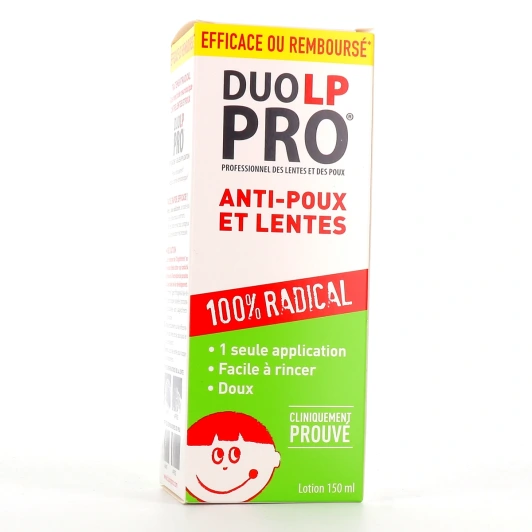 Garantie 100% radicale et utilisable pour toute la famille y compris les enfants et les bébés dès 6 mois, la lotion anti-poux et lentes Duo LP-Pro permet d'éliminer efficacement les poux et les lentes présents sur les cheveux. Efficace en une seule application, la lotion anti-poux et lentes Duo LP-Pro permet d'asphyxier et donc d'éliminer les parasites sur le cuir chevelu, quel que soit leur stade de développement.