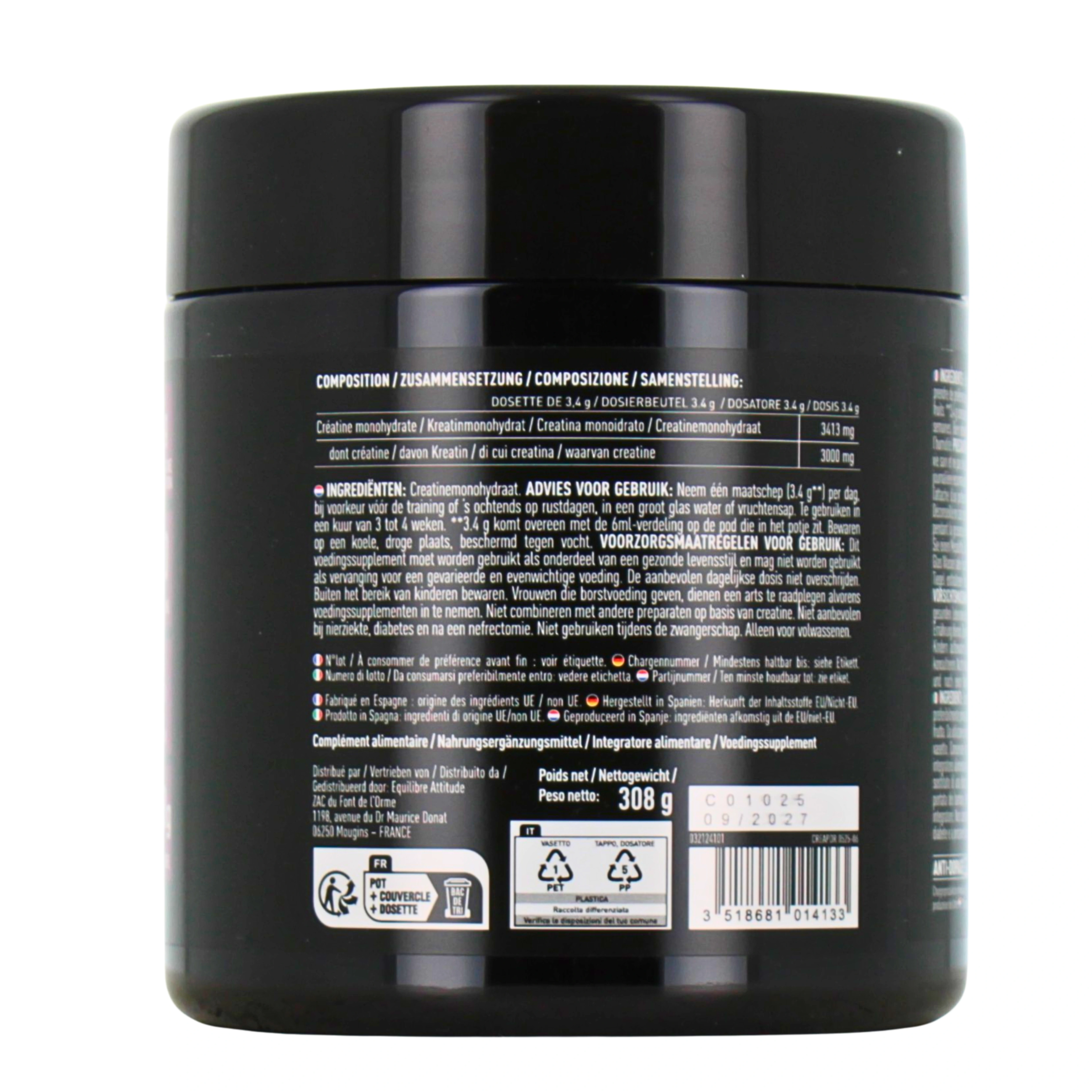 EAFIT Pure Créatine aide à optimiser naturellement son potentiel énergétique cellulaire, en augmentant la vitesse de resynthèse de l’ATP, pour fournir une source d’énergie immédiatement disponible, lors des efforts explosifs et des petites séries de forte intensité.