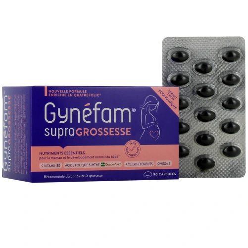 Gynéfam Supra Grossesse est un complément alimentaire à base de nutriments essentiels pour la maman et le développement normal du bébé.