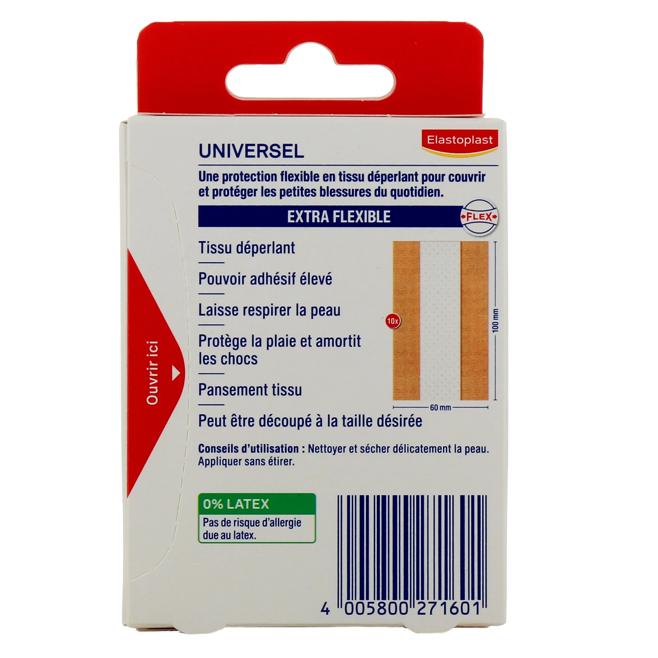 Indispensables dans votre trousse de secours, les pansements Elastoplast Universel sont très résistants à l'eau et offrent un pouvoir adhésif élevé.