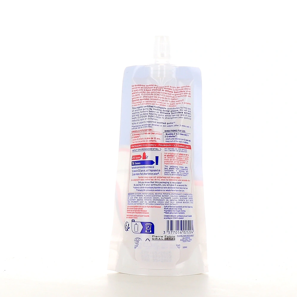 Présentation proposée pour le dentifrice bio gencives sensibles Elgydium sur notre pharmacie en ligne : Eco-pack de 100 ml