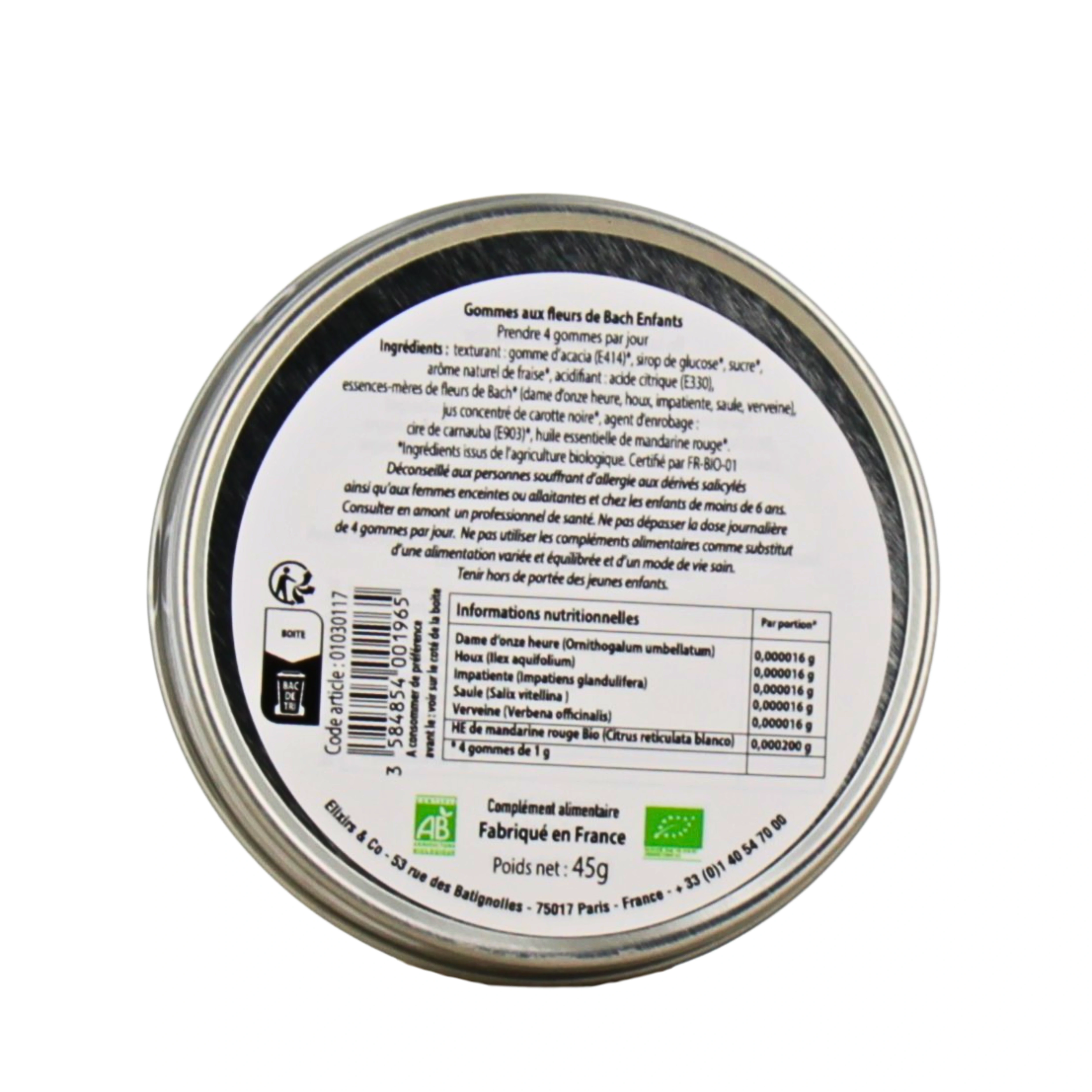 Les pastilles pour enfants Fleurs de Bach aident à apaiser et à calmer les enfants agités ainsi que les enfants en plein chagrin. Pour cela, elles se composent de Fleurs de Bach de Dame de onze heures, de Saule, d'Impatiente, de Verveine et de Houx. De l'huile essentielle de mandarine rouge vient également compléter la formule de ces pastilles.