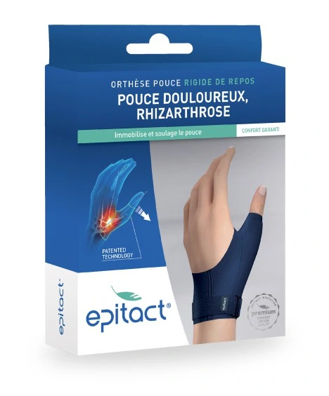 L'orthèse de pouce rigide de repos Epitact sert à immobiliser et soulager en cas de pouce douloureux ou d'arthrose du pouce (rhizarthrose). Cette orthèse ajustable s'adapte parfaitement à la morphologie de votre main pour vous garantit une efficacité optimale !