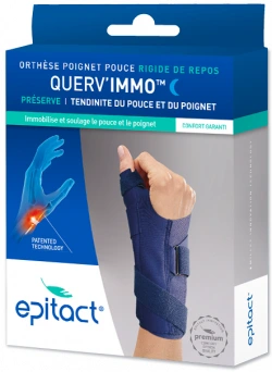 Pour les personnes souffrant de tendinites, d'entorses ou de troubles musculosquelettiques au niveau du poignet et du pouce, Epitact a conçu l'orthèse rigide de repos Querv'Immo.