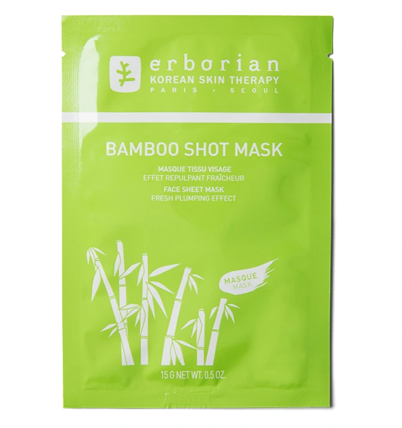 Erborian Bamboo Shot Mask est un masque en tissu pour le visage au double effet repulpant et fraîcheur. Il s'utilise sur tous les types de peaux et offre des résultats comparables à ceux procurés par l'application d'un sérum.
