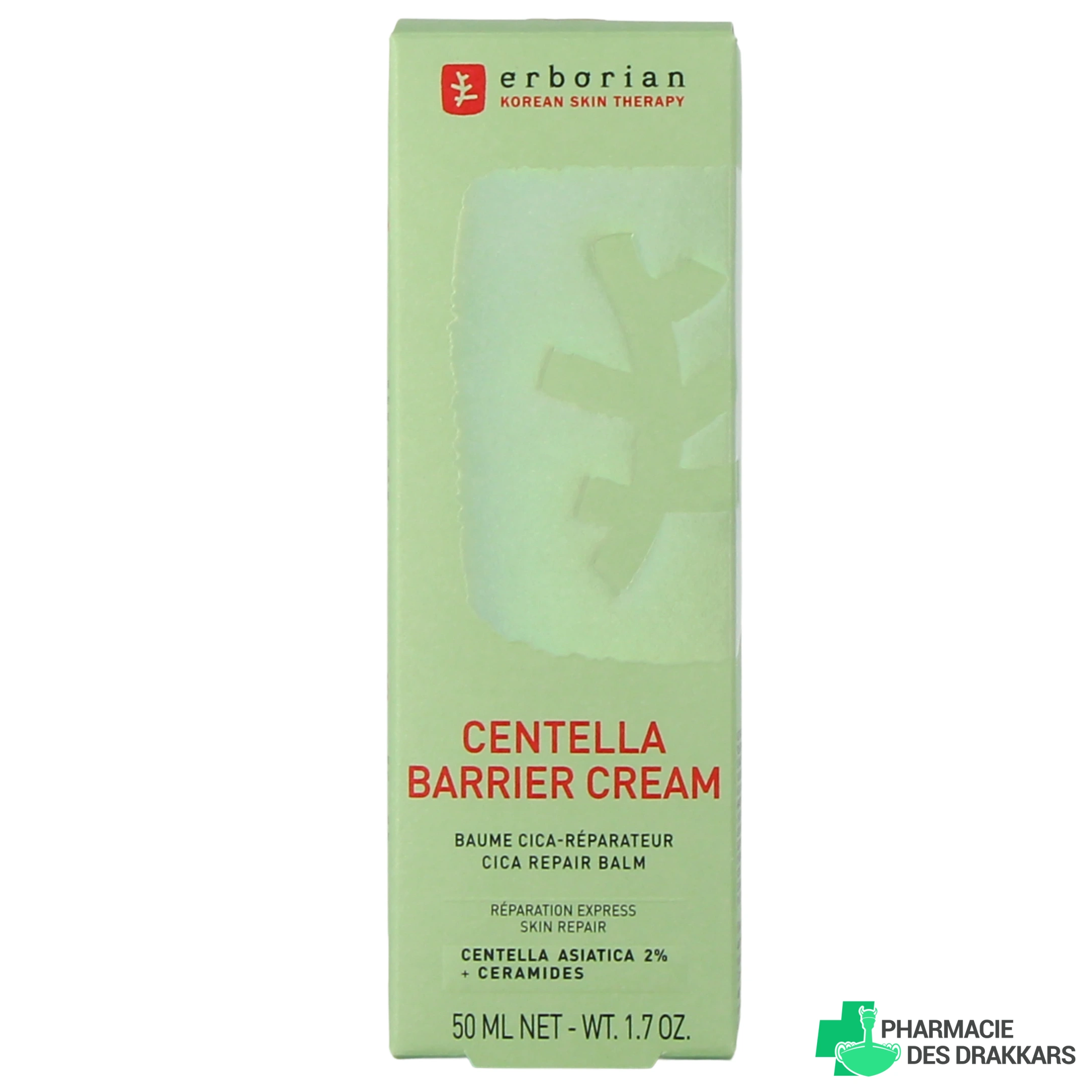 La centella barrier cream mise au point par Erborian est un baume cica-réparateur enrichi en céramide en panthénol (vitamine B5). Elle nourrit intensément, booste la réparation cutanée et renforce la barrière de protection de la peau en seulement 30 minutes. Sa texture riche et fondante crée un film protecteur non gras et non collant qui réduit les zones de sécheresse et les tiraillements. Sans parfum, elle convient particulièrement aux peaux normales à sèches, même sensibles, en quête de nutrition et de protection.