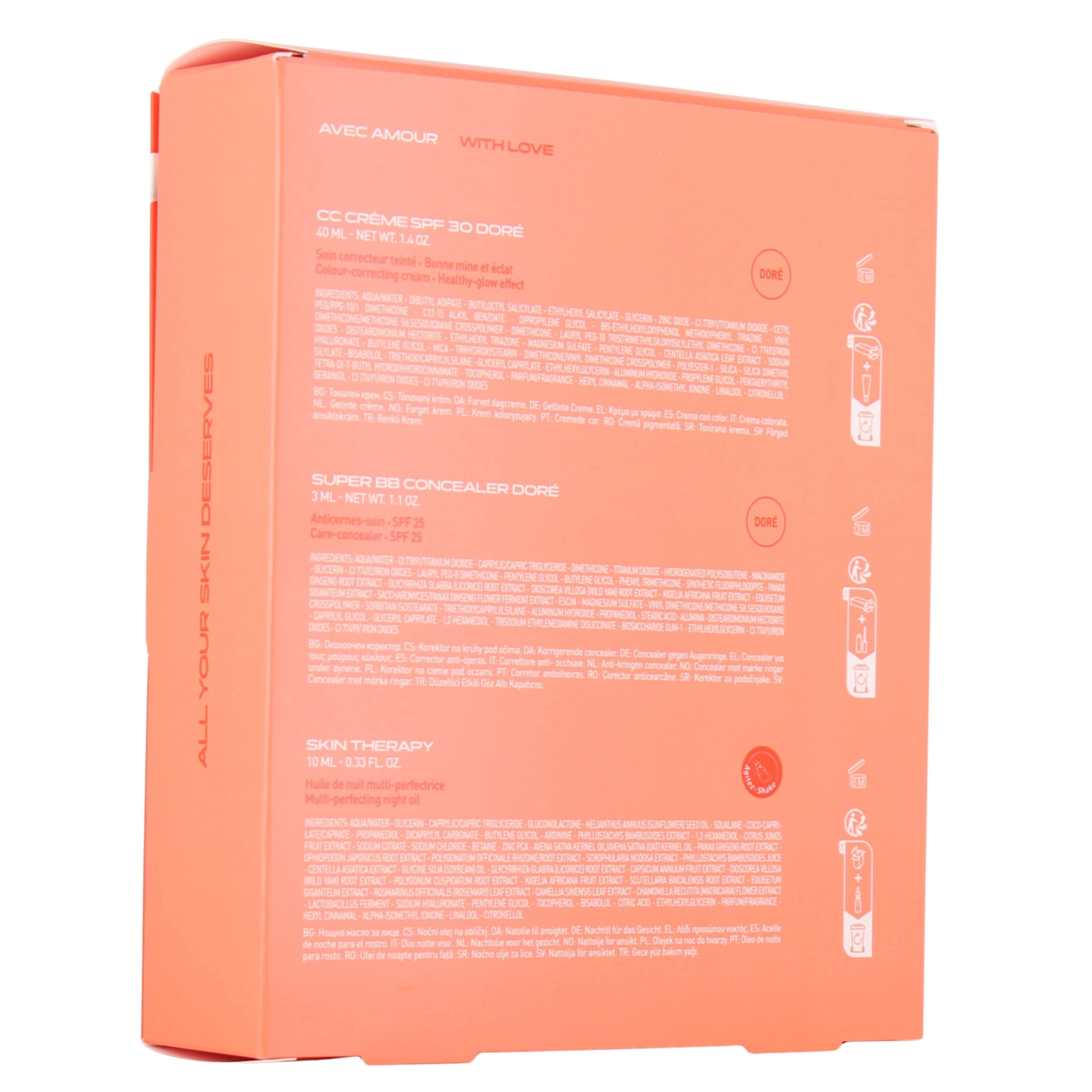 Au sein de ces coffrets, la CC Crème teintée doré est associée au Super BB Concealer teinté doré tandis que la CC Crème teintée clair est elle associée au Super BB Concealer teinté nude.