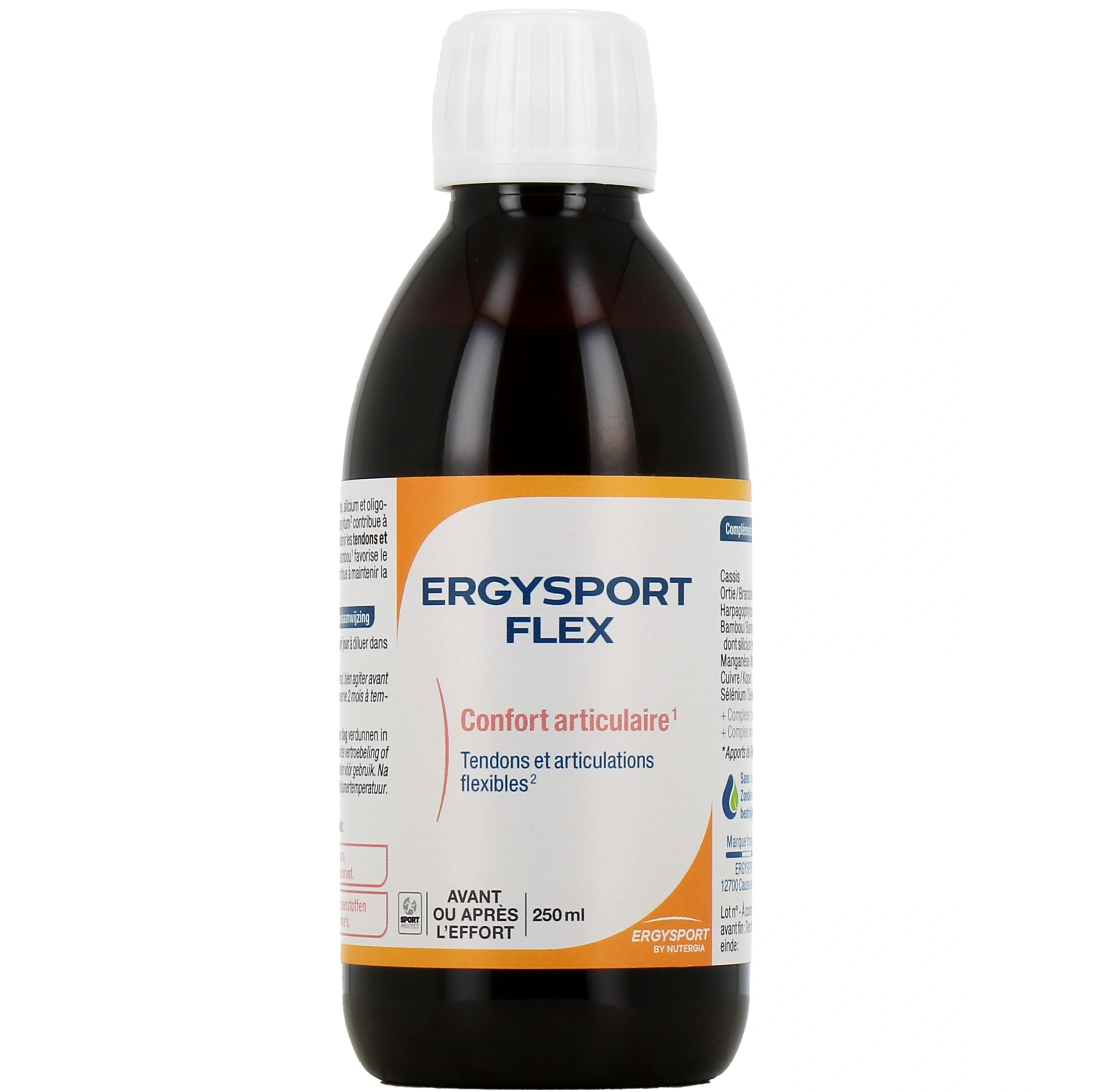 Ergysport Flex Articulation de Nutergia est un complément alimentaire liquide et buvable en flacon de 250 ml, destiné au renfort articulaire et à la santé des cartilages des sportifs.