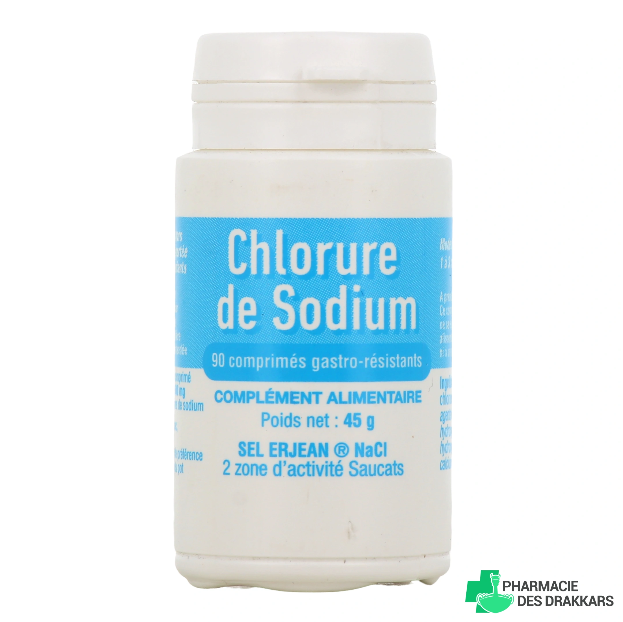 Présentation disponible pour Erjean Chlorure de Sodium sur notre pharmacie en ligne : Pot de 90 comprimés gastro-résistants