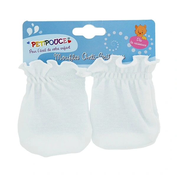 A sa naissance, le nourrisson a un gros besoin de contact et cherche à comprendre les limites de son corps. Cela se traduit par différents réflexes, dont celui de rapprocher ses mains de son visage. Dans certains cas, ce geste induit un risque de griffures. En effet, les bébés peuvent naître avec des ongles très longs, mais il n'est pas conseillé de les raccourcir immédiatement. En attendant de pouvoir limer les ongles de bébé, il est donc recommandé d'utiliser des petites moufles protectrices, à l'instar des moufles anti-griffures Petipouce Estipharm. Le rôle de ces moufles est d'éviter les petites griffures involontaires. Elles ont toute leur place dans la valise de maternité et feront partie du trousseau de naissance de bébé. Douces et légères, les moufles Petipouce sont 100 % coton pour respecter au maximum la peau sensible des tout-petits. Elles sont proposées dans un coloris blanc qui convient autant aux petites filles qu'aux petits garçons.