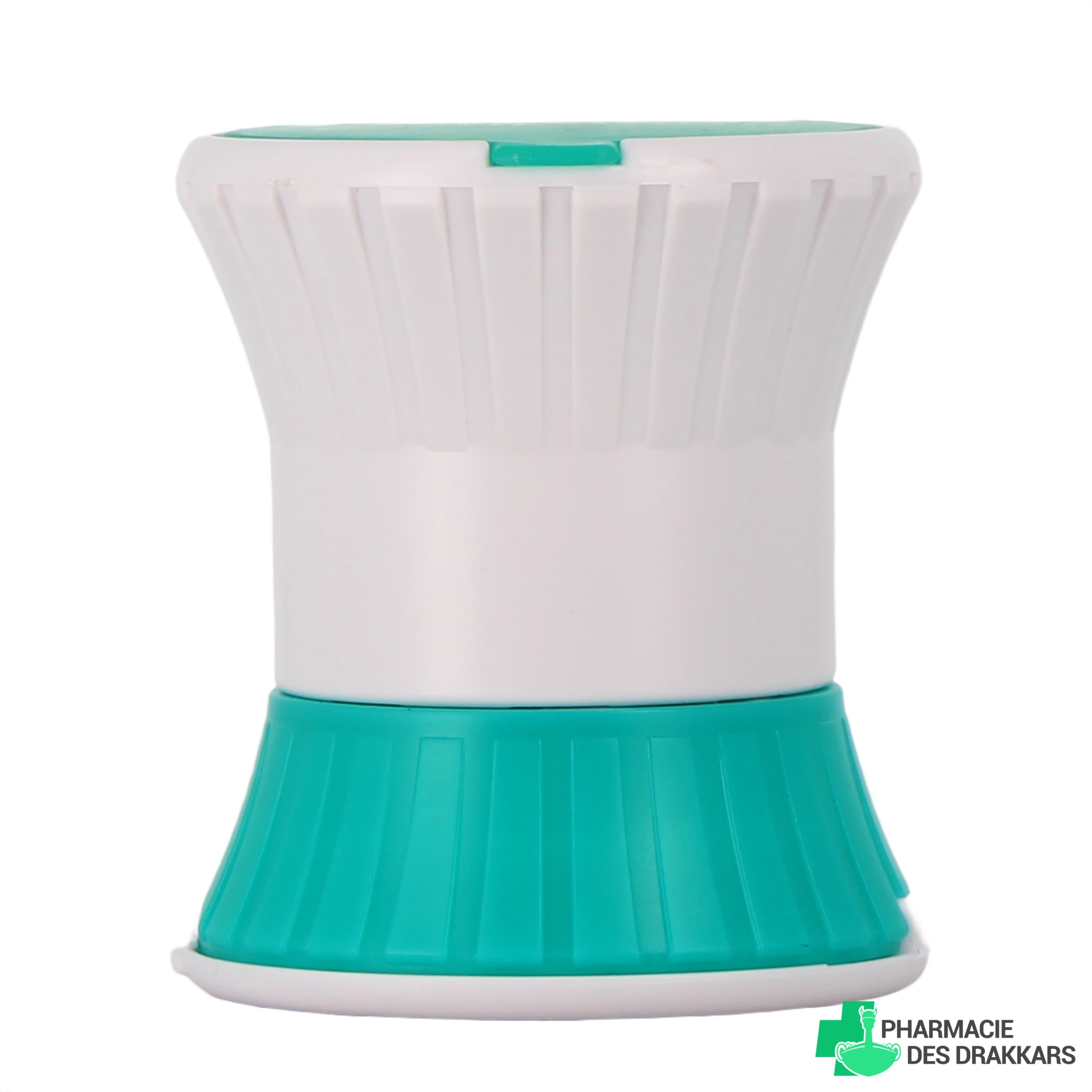 - Le broyage des comprimés : en dévissant la partie centrale, vous pouvez réduire vos médicaments en une poudre fine et ainsi l’intégrer à une boisson ou dans vos aliments.