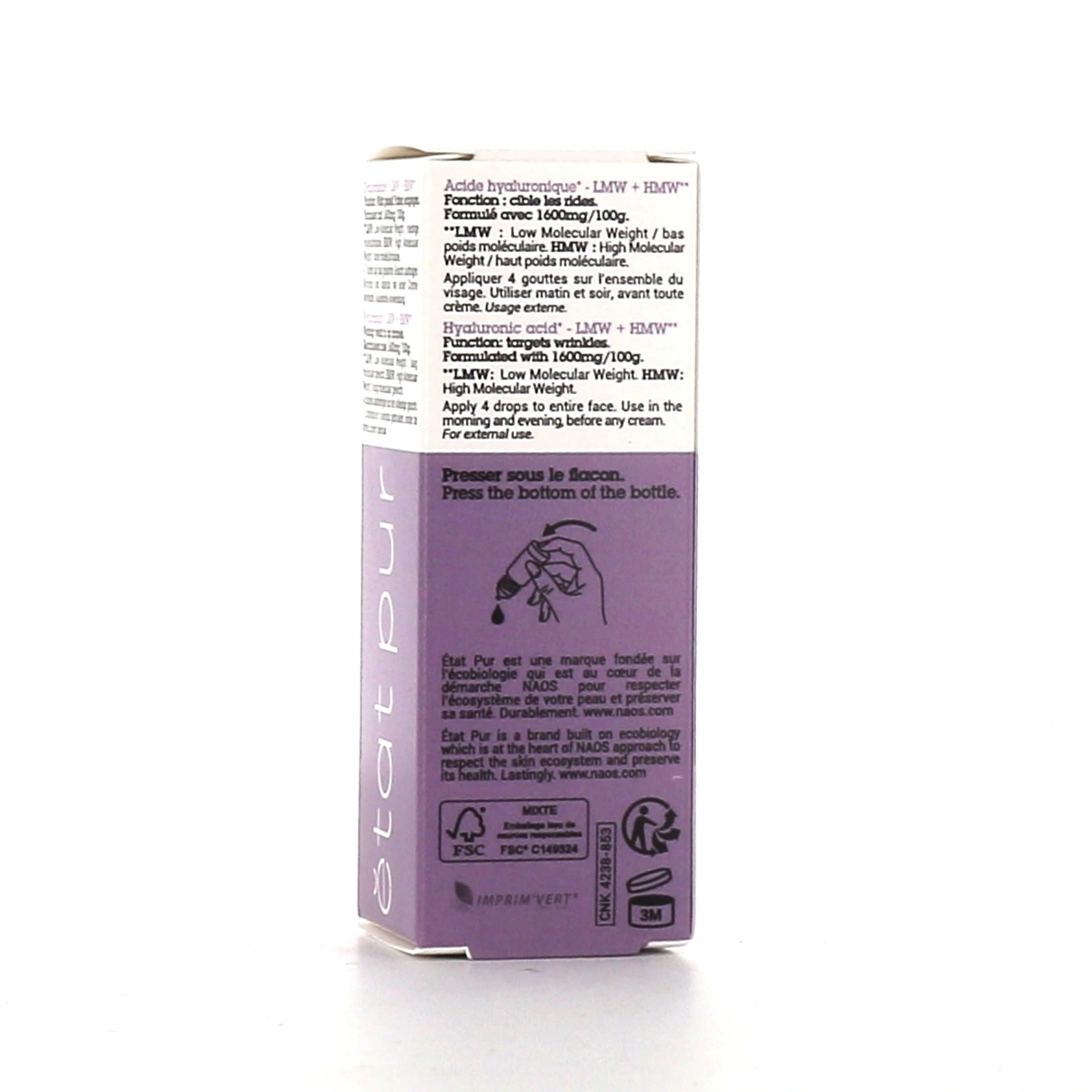 Parce que les années qui passent laissent immanquablement leur empreinte sur la peau de votre visage, Acide Hyaluronique de la gamme Etat Pur agit à différents niveaux de votre épiderme pour vous aider à mieux vivre avec les différents signes de l'âge. C'est un actif qui lisse votre peau en surface, tout en repulpant en profondeur les rides présentes depuis un certain temps sur votre visage.