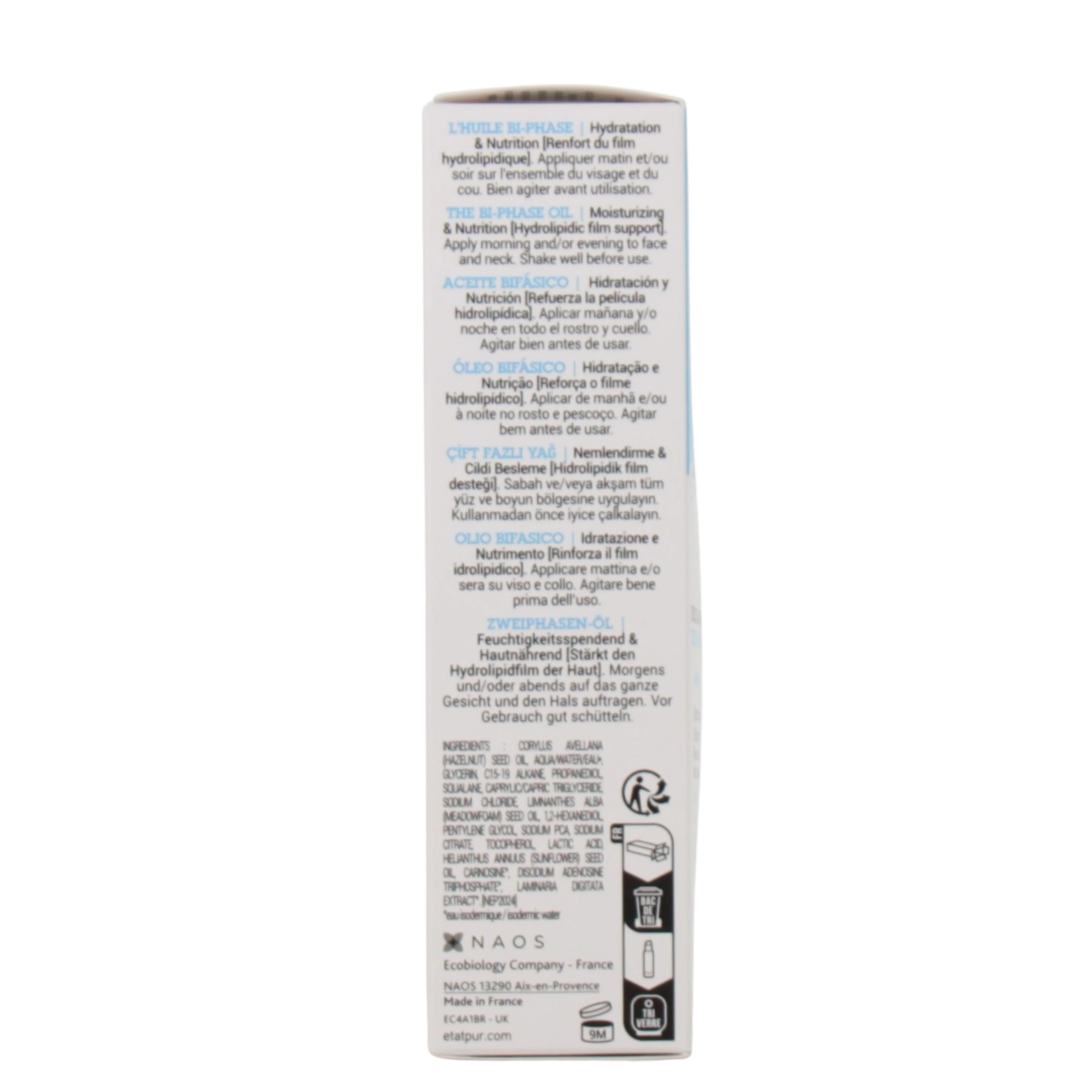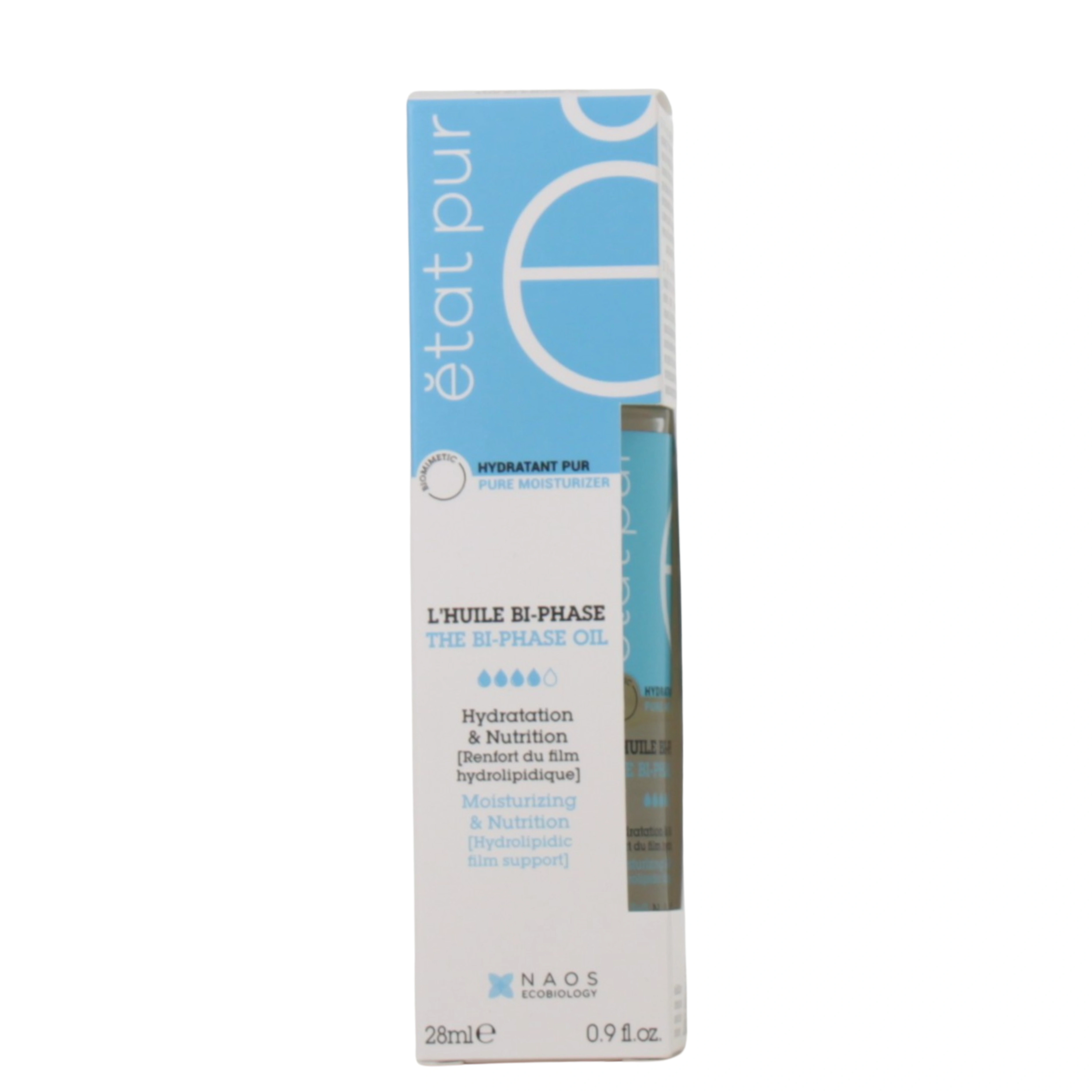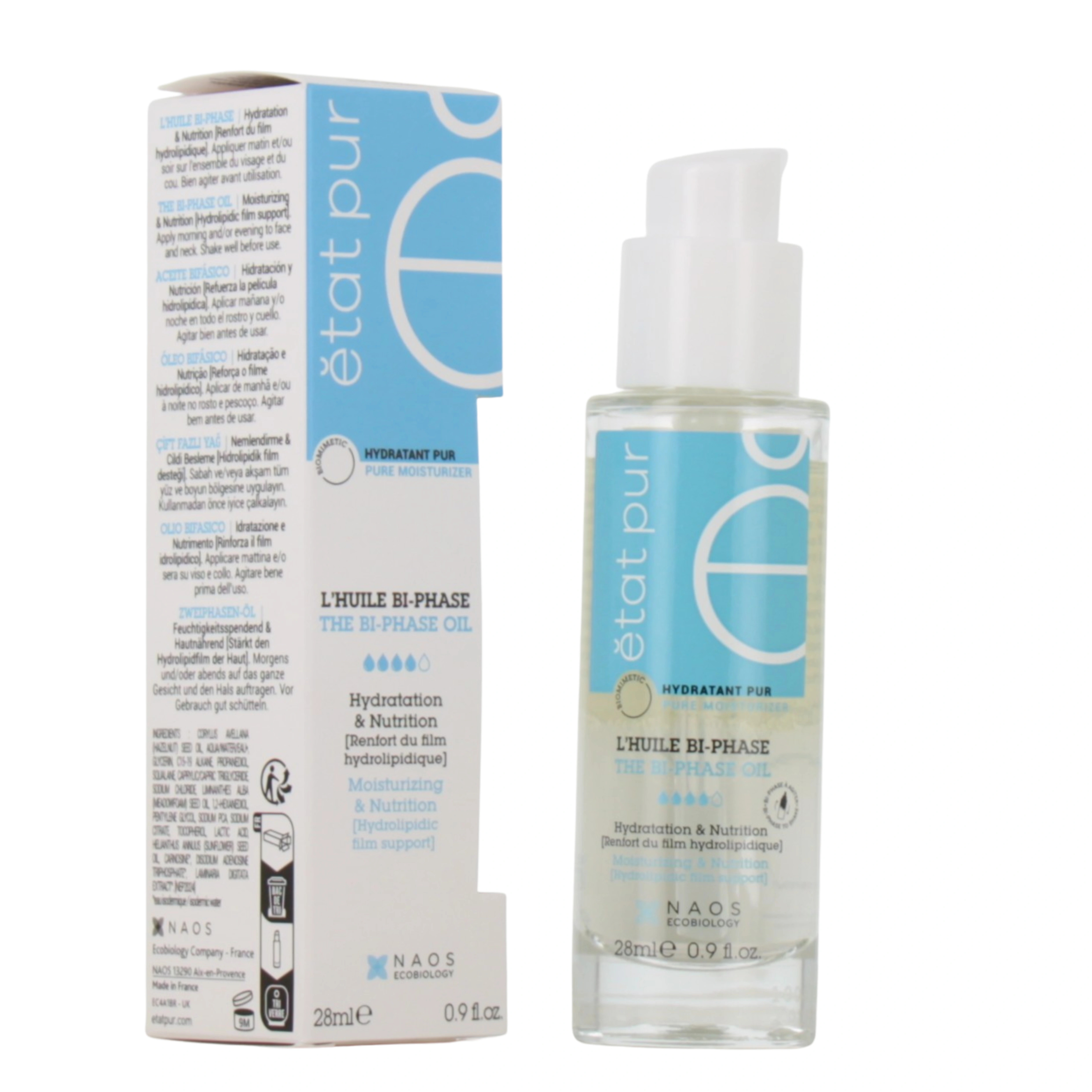 Formulée pour répondre aux besoins des peaux sèches à très sèches, l'huile bi-phase Etat Pur est un soin qui permet d'hydrater intensément la peau durant 8 heures tout en respectant le microbiome de la peau. En plus de cette hydratation longue durée, ce soin Etat Pur nourrit en profondeur et renforce le film hydrolipidique.