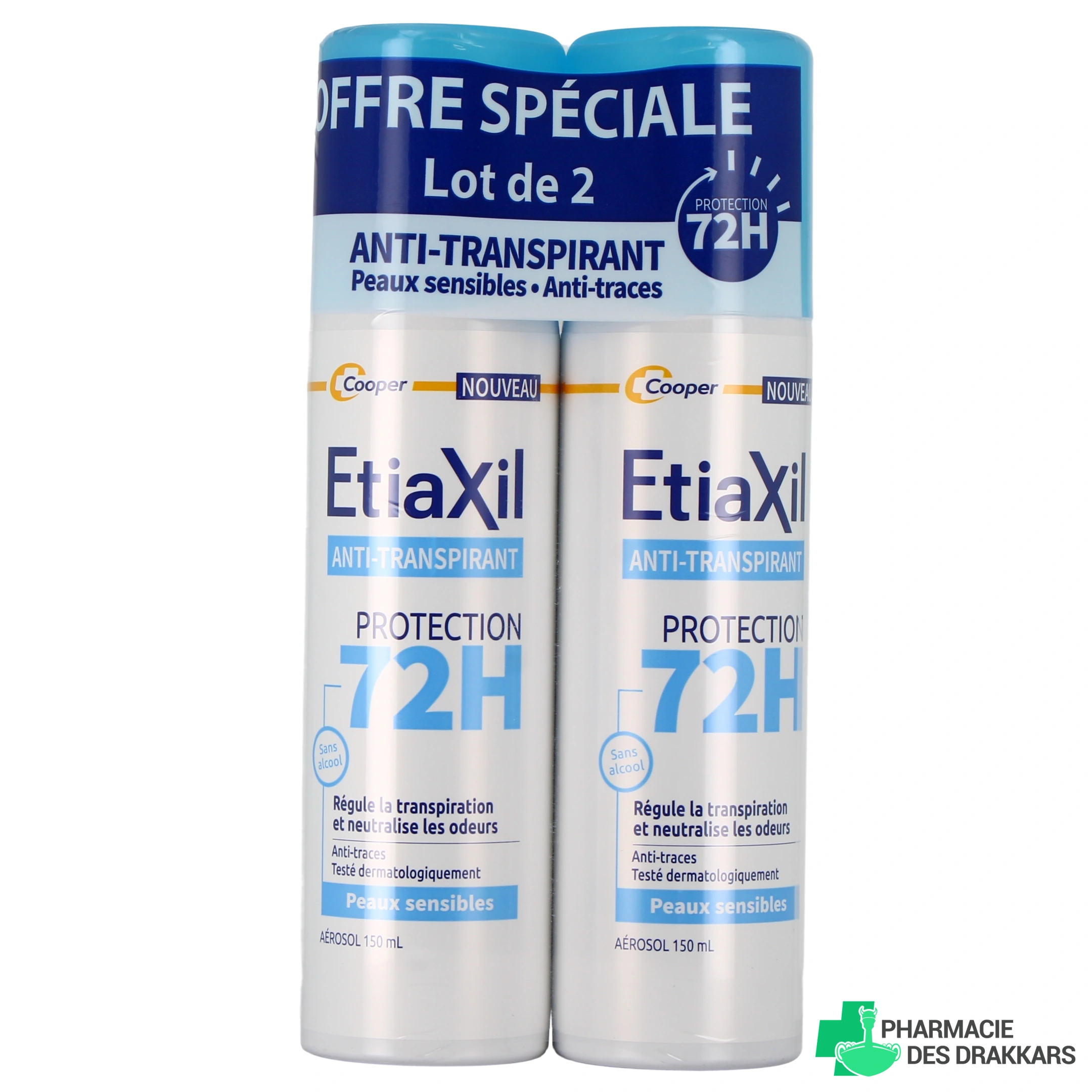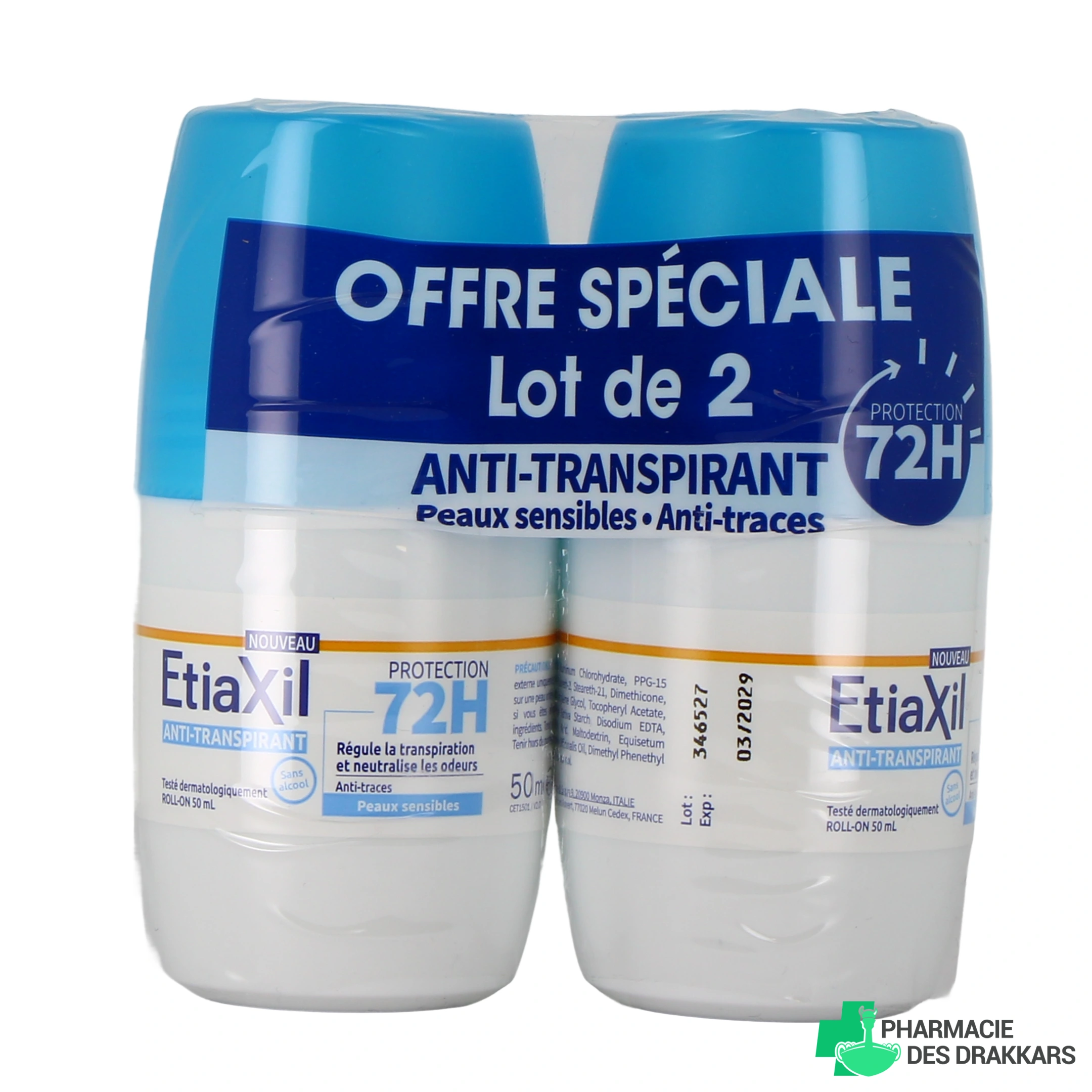 Le déodorant anti-transpirant Protection 48h Etiaxil a été spécialement formulé pour les peaux sensibles : il est sans alcool ni paraben, et a été testé sous contrôlé dermatologique. Il présente également l'avantage d'être disponible sous de nombreuses formes : spray, roll-on (roller à bille), stick, vaporisateur sans gaz, et même un spray spécialement conçu pour les pieds !