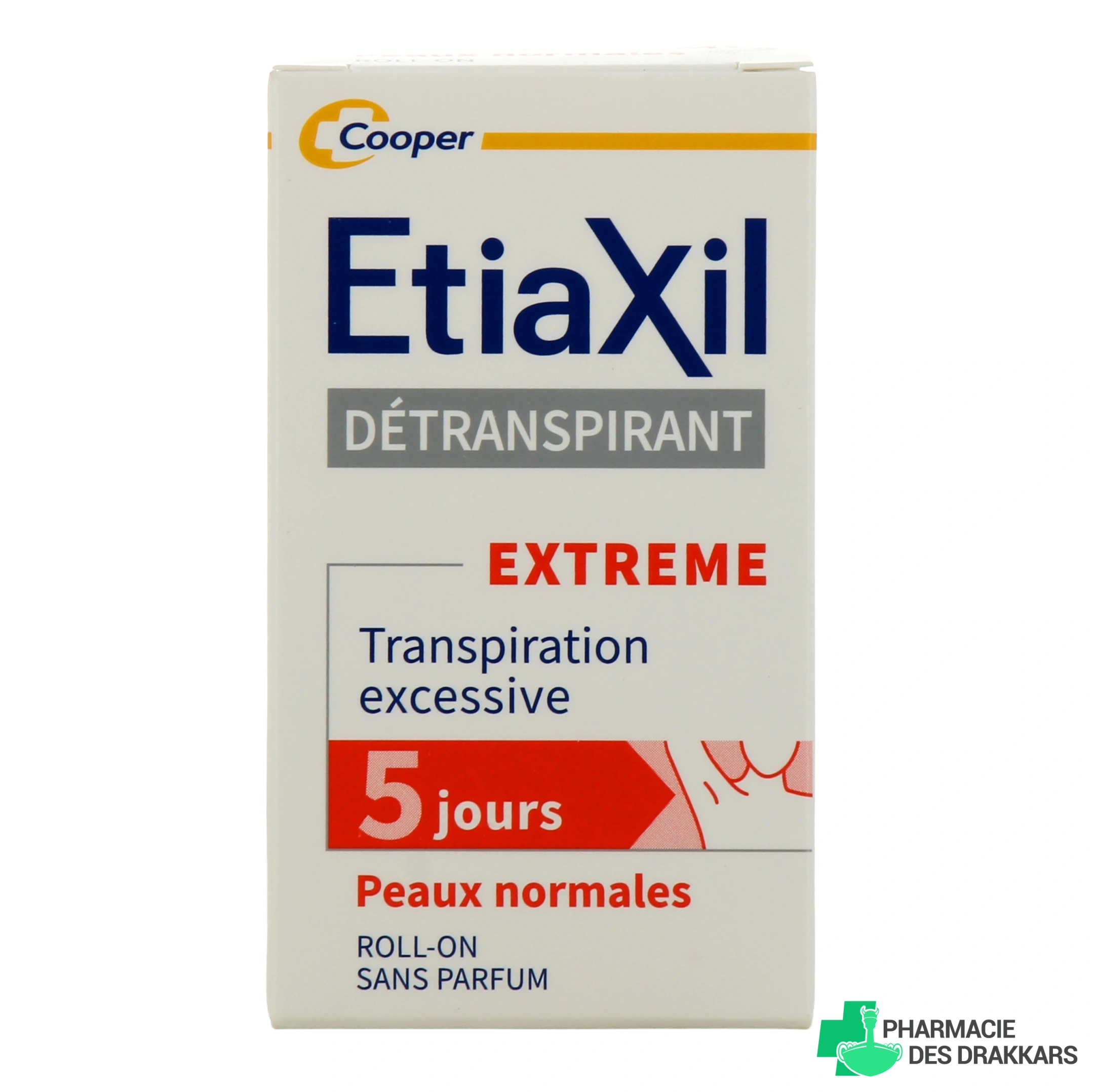 Pour les personnes souffrant d'un niveau de transpiration important, découvrez le détranspirant extrême Etiaxil pour peaux normales. Ce détranspirant est proposé en 2 formats : roll-on pour les aisselles, ou spray pour les aisselles, les mains, les pieds et le torse.