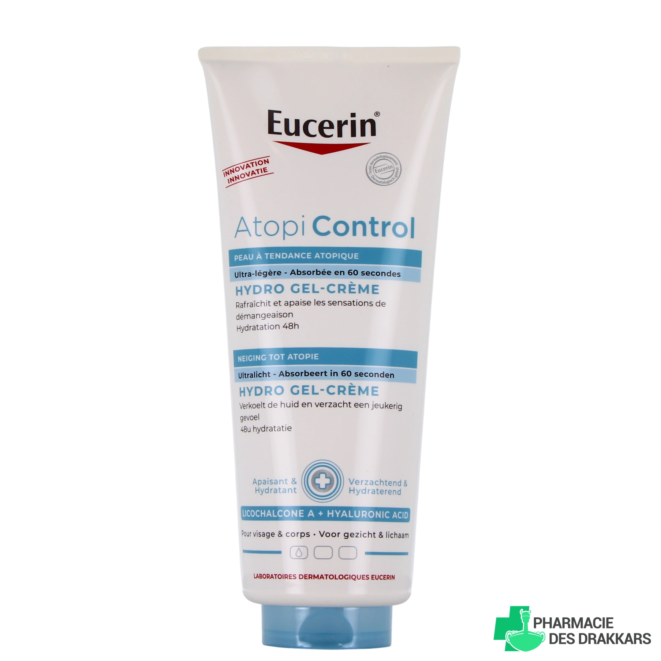 Présentation disponible sur notre pharmacie en ligne pour l'hydro gel-crème Atopi Control Eucerin : tube de 400 mL.