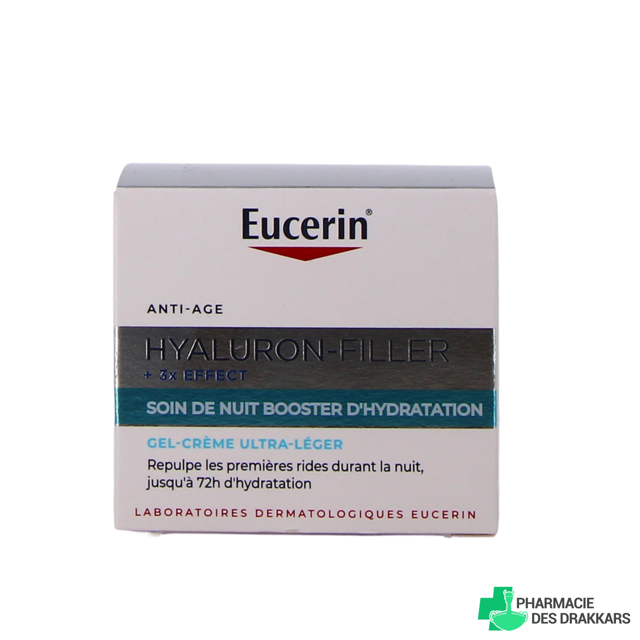 Le gel-crème nuit Hyaluron-Filler 3X Effect est un soin anti-âge de nuit proposé par les laboratoires dermatologiques Eucerin. Booster d'hydratation, il est indiqué pour la prise en charge des premières rides.