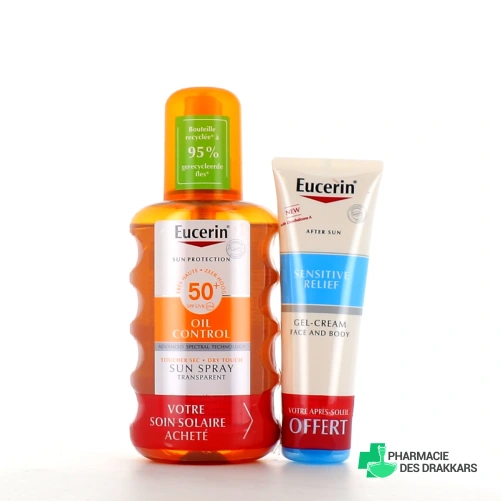 Présentation proposée pour le spray solaire Eucerin Oil Control SPF 50+ sur notre pharmacie en ligne : Spray de 200 ml