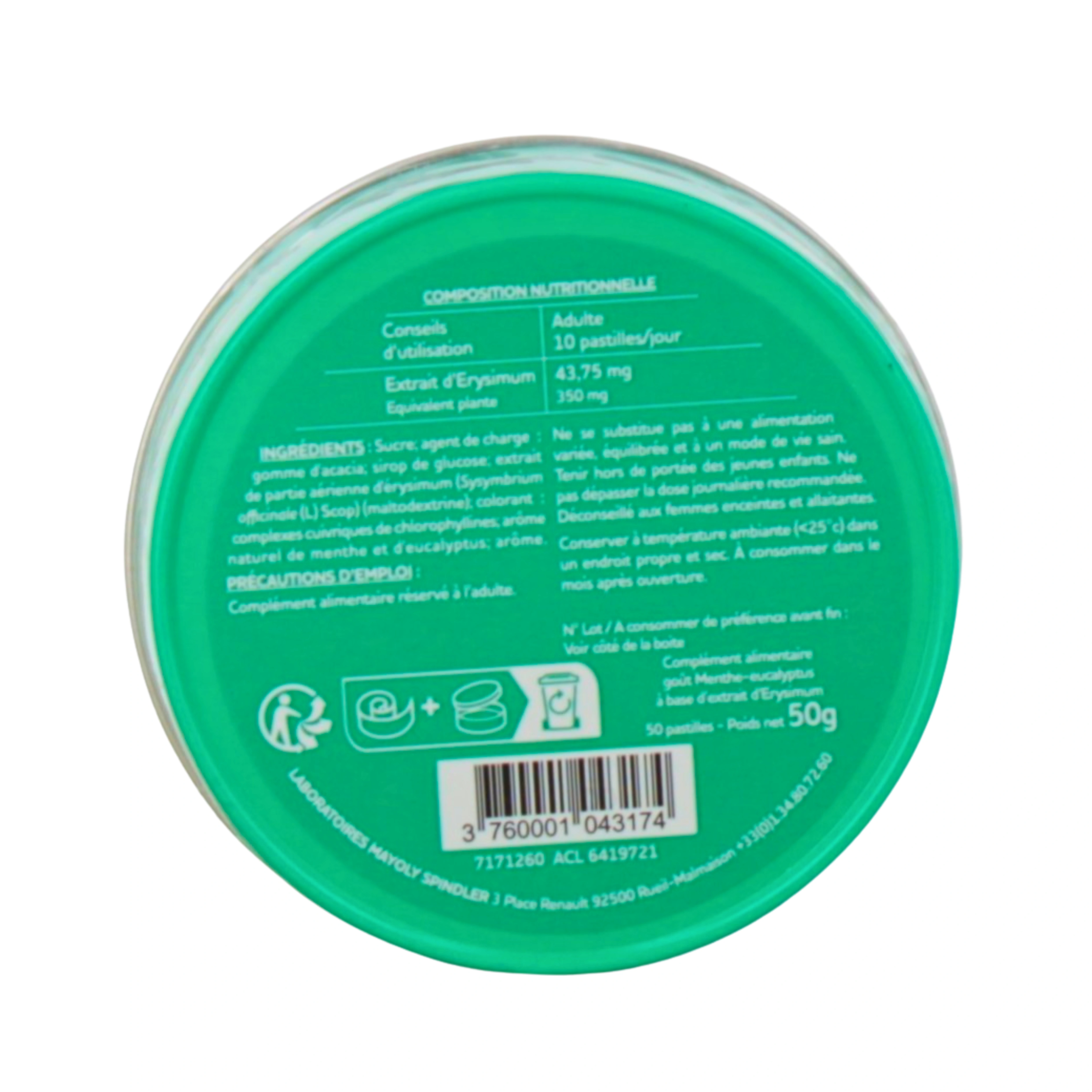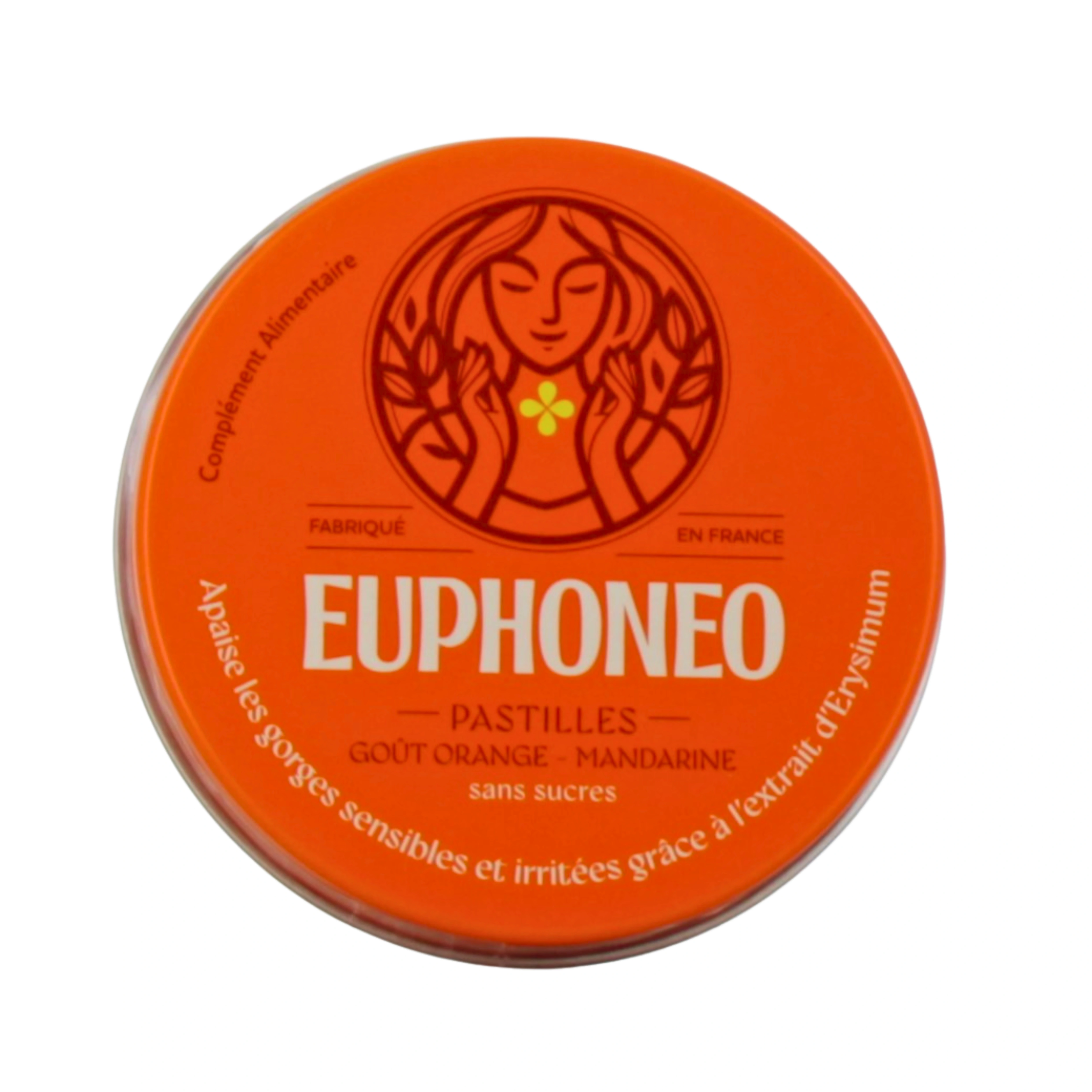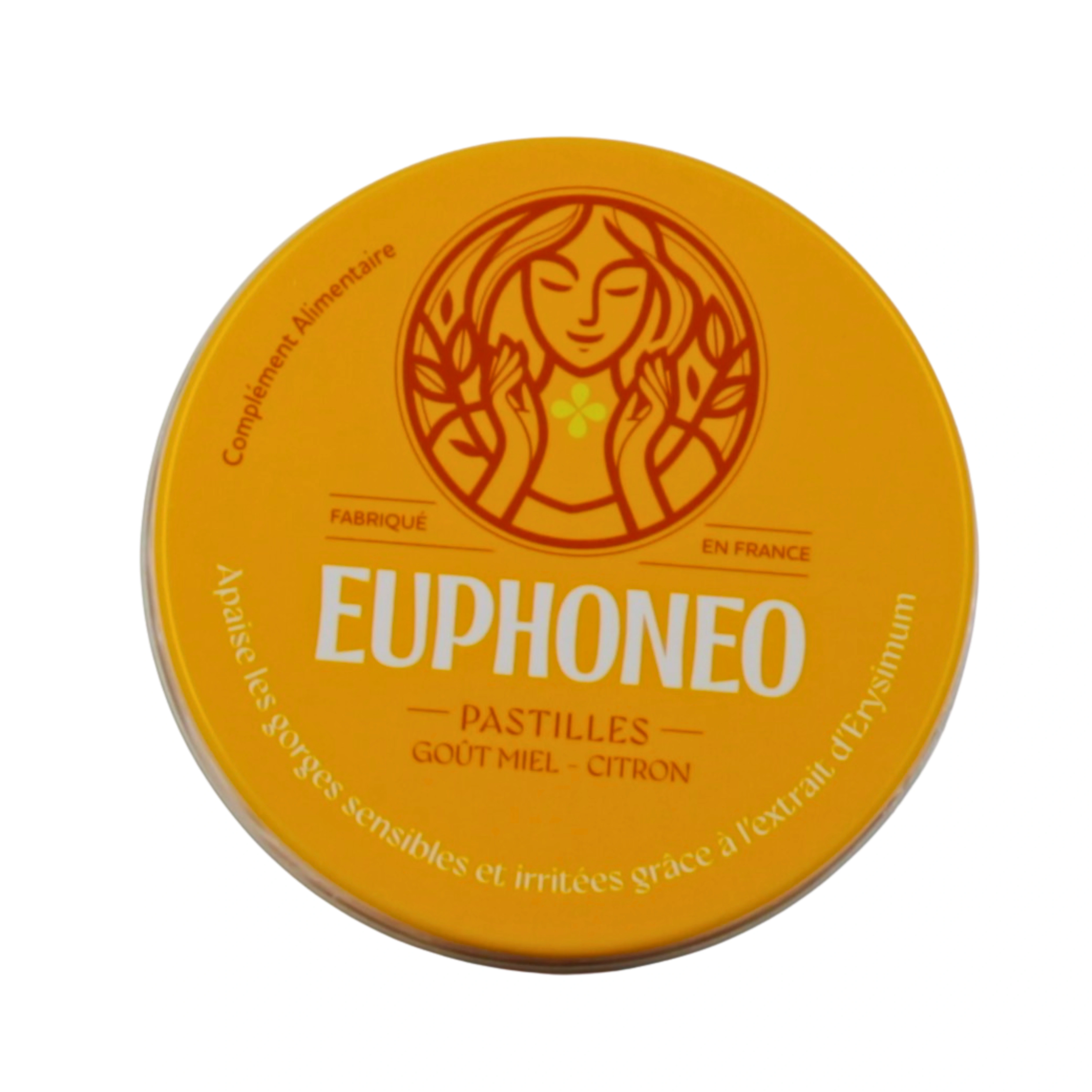 Euphoneo pastilles est un complément alimentaire du laboratoire Mayoly Spindler formulé à base de plantes (notamment de l'extrait sec des parties aériennes fleuries d'érysimum) indiqué afin de contribuer à soulager les symptômes d'irritation de la gorge, par exemple les enrouements ou une toux sèche. Disponibles en différentes versions, les pastilles Euphoneo sont réservées à une utilisation par voie buccale, chez l'adulte et l'enfant de plus de 6 ans uniquement (sauf pour la version Menthe Eucalyptus) en raison de leur forme pharmaceutique. Leur usage est réservé à l’indication spécifiée sur la base exclusive de l’ancienneté de l’usage.