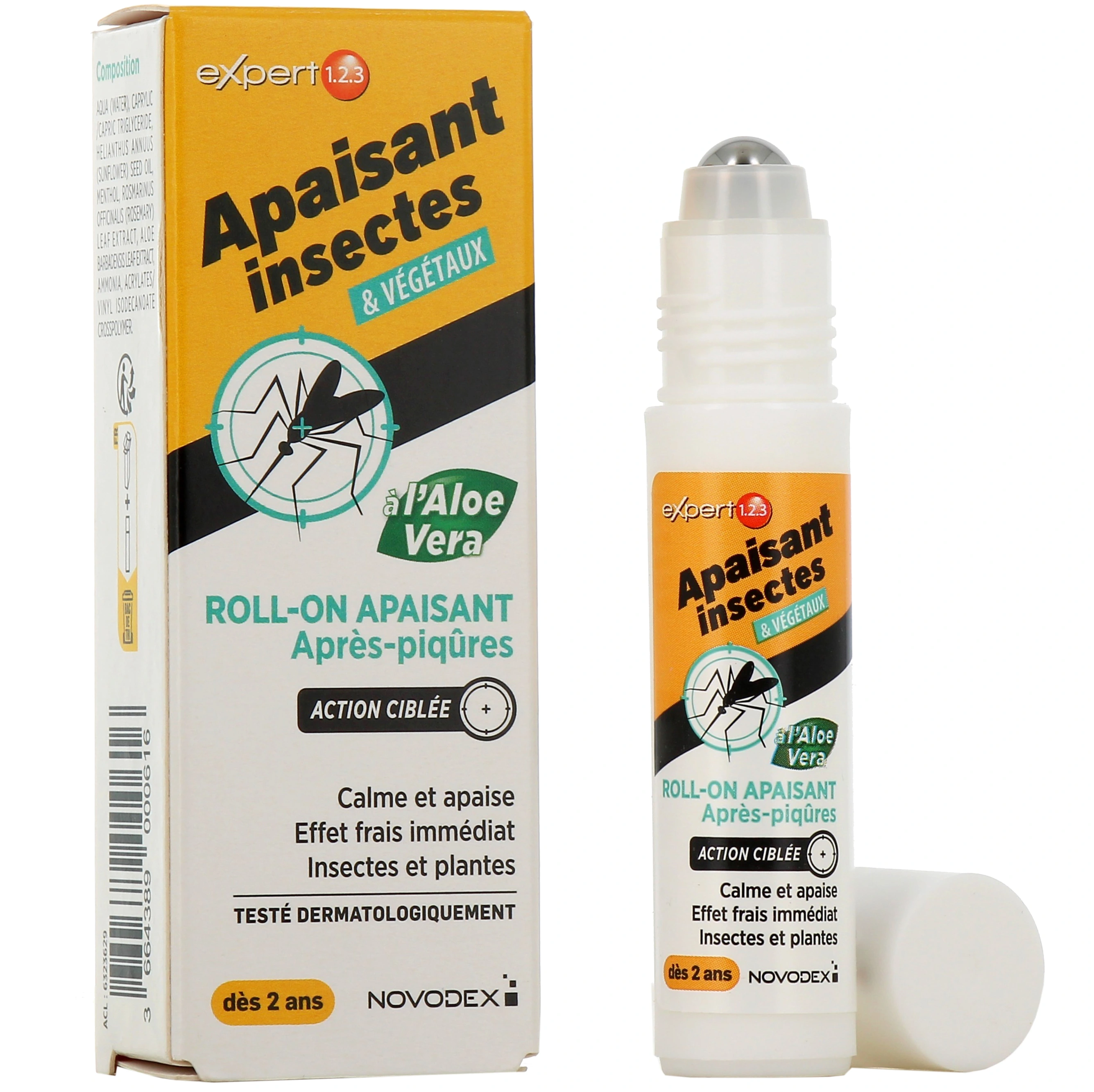 Formulé à partir d'aloe vera, le roll-on apaisant Après-Piqûres Expert 123 du laboratoire Novodex est destiné à apporter une action ciblée sur les piqûres grâce à sa bille en métal, qu'elles aient été causées par des insectes ou des végétaux. Doté d'une formule ayant été testée dermatologiquement, et adapté pour les peaux sensibles, le roll-on apporte un effet frais immédiat lorsque vous l'appliquez, ce qui contribue à apaiser et à calmer la piqûre.