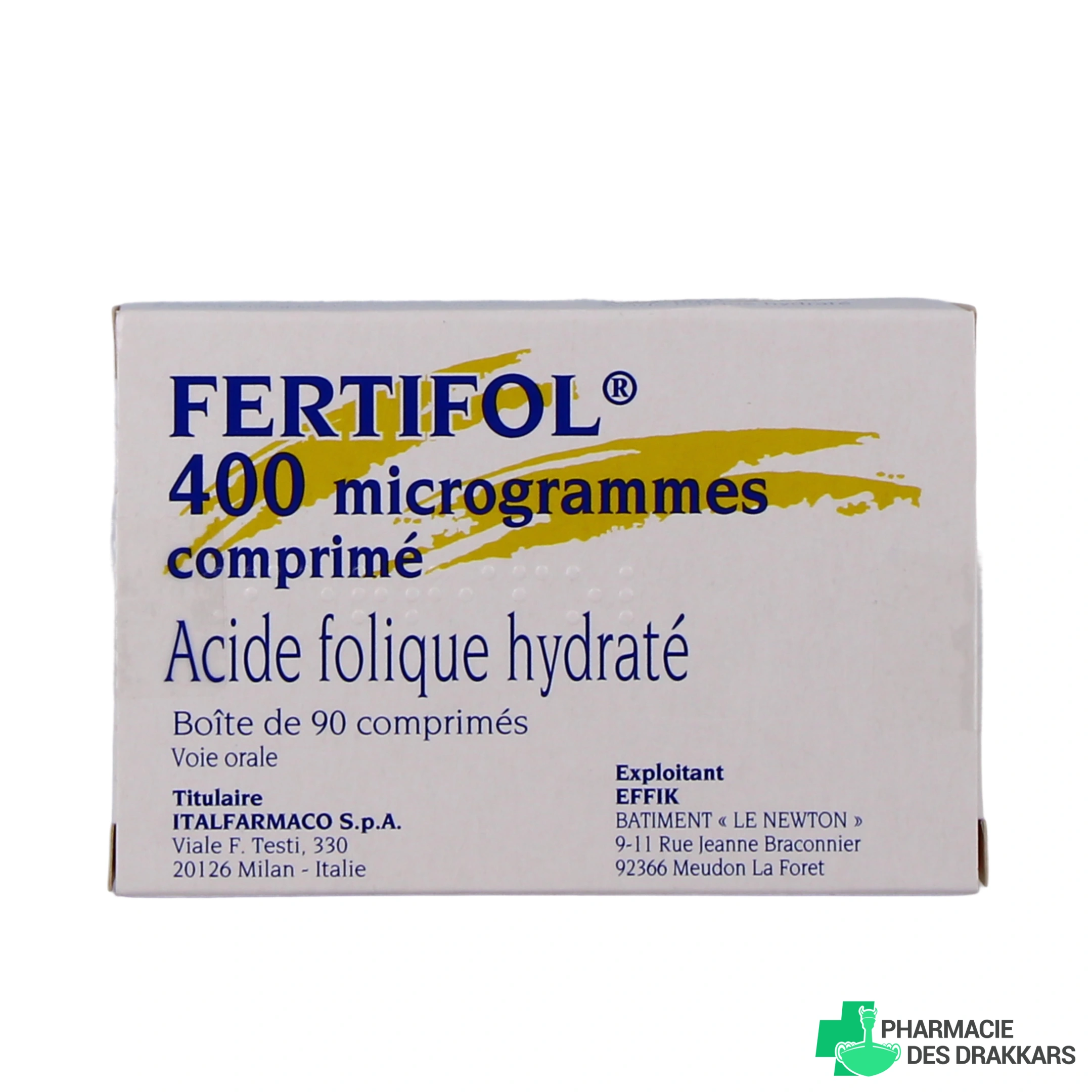 Fertifol est un médicament qui contient 400 µg d'acide folique par comprimé.