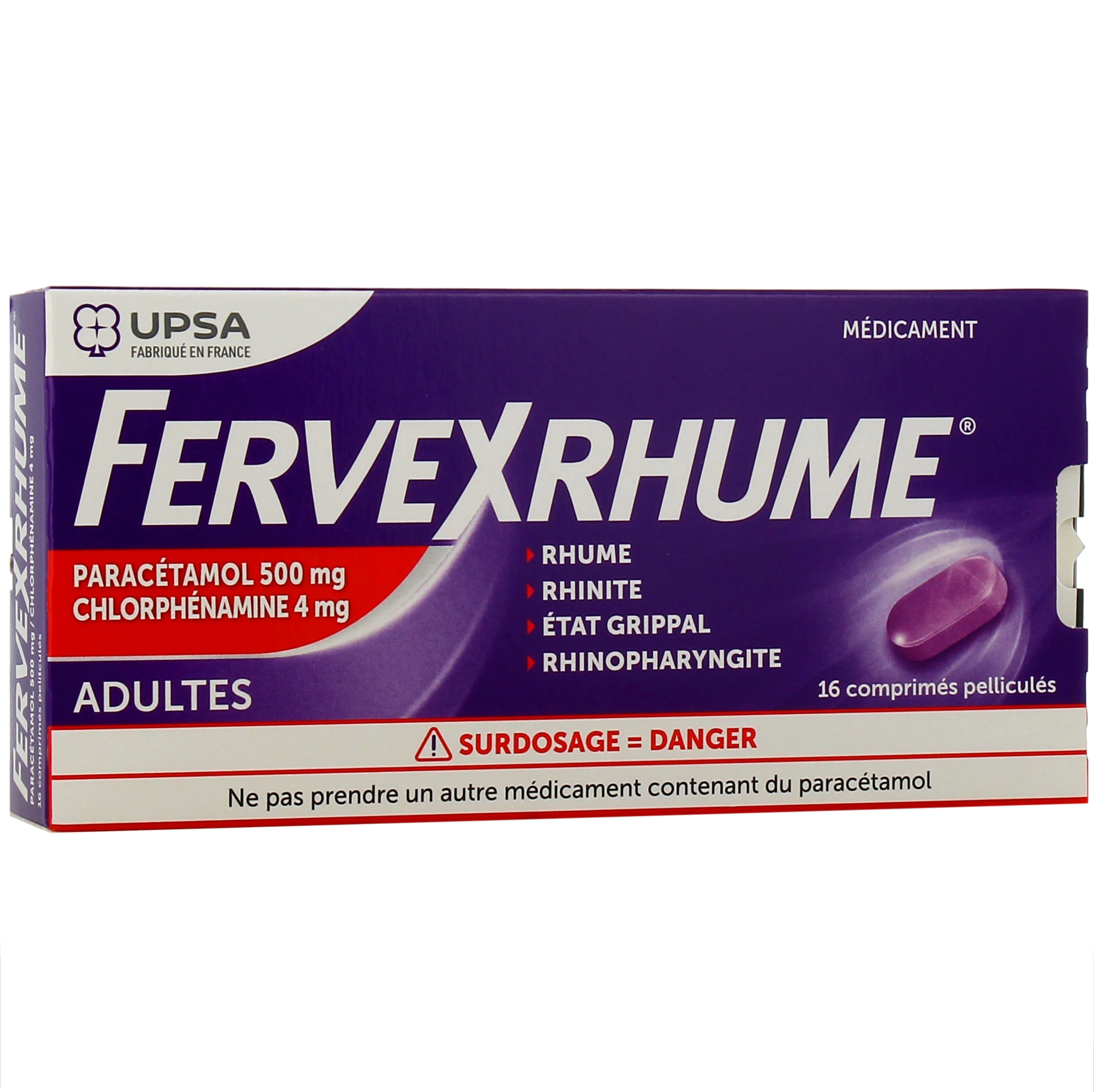FervexRhume est un médicament à base de paracétamol et de cholorphénamine utilisé pour soulager les symptômes liés aux rhumes : écoulement nasal, éternuements, larmoiements, maux de tête et fièvre.