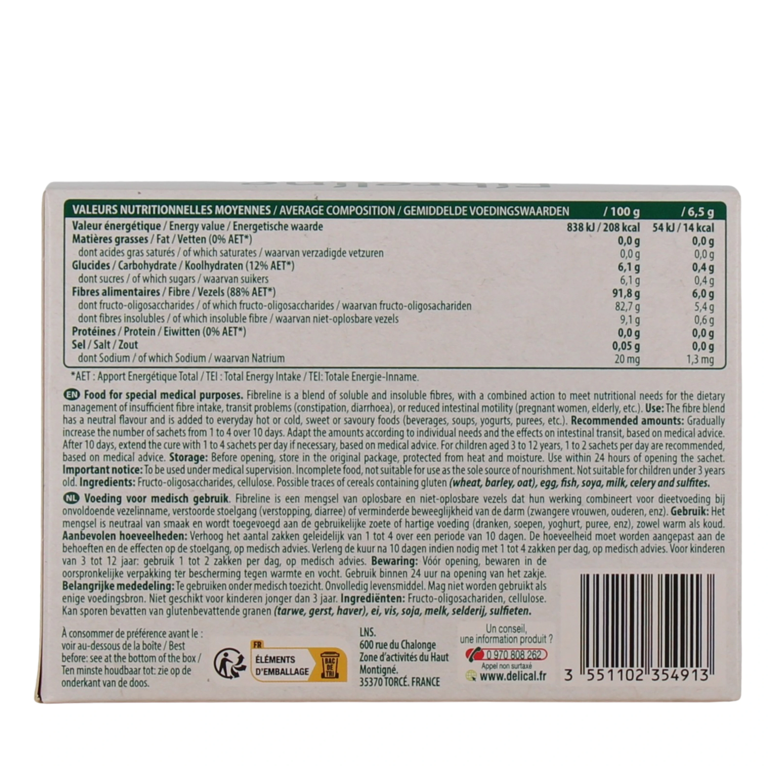 Fibreline Transit est une denrée alimentaire destinée à des fins médicales spéciales de la gamme Delical sous forme de poudre, à destination des personnes ayant des besoins nutritionnels spécifiques.