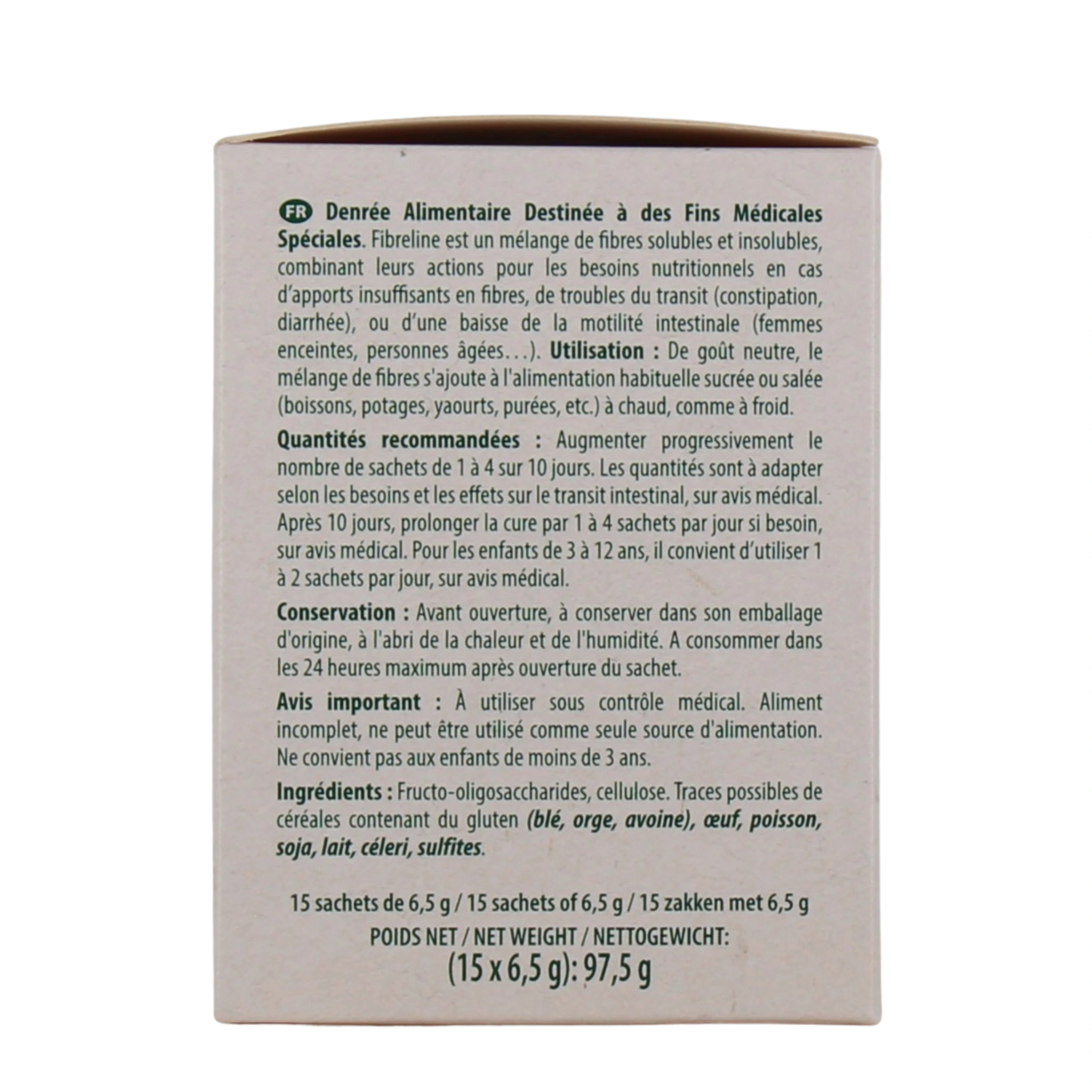 Avis Important : En tant que DADFMS, Fibreline Transit doit impérativement être utilisé sous contrôle médical. Il est important de noter qu'il s'agit d'un aliment incomplet et ne doit en aucun cas être utilisé comme unique source de nutrition. Son usage est réservé aux adultes, bien qu'il puisse être administré aux enfants de 3 à 12 ans sur avis médical. Il ne convient pas aux enfants de moins de 3 ans.
