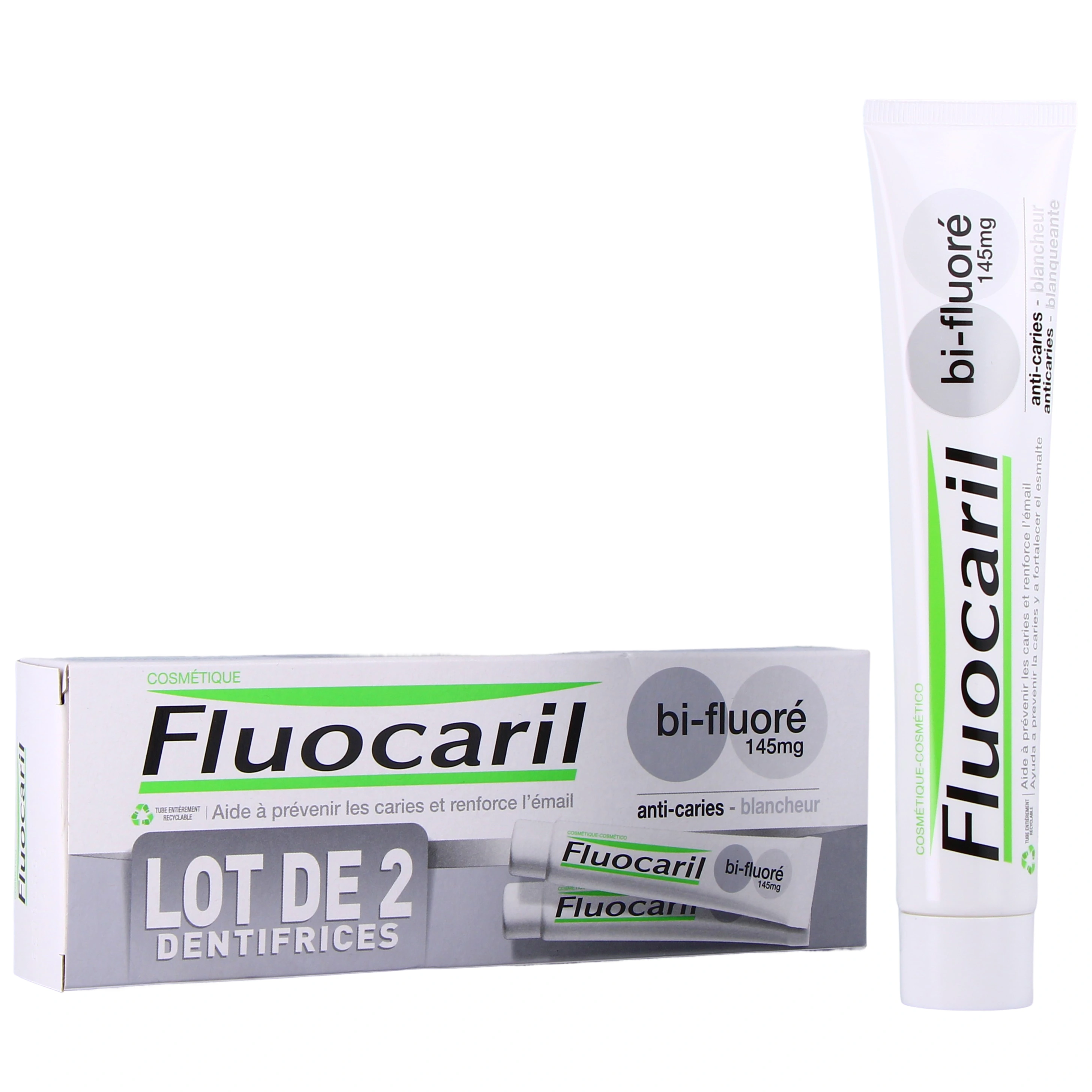 Pour aider à prévenir les caries et à renforcer l'émail, Fluocaril a mis au point le Dentifrice Blancheur Bi-fluoré 145 milligrammes, un soin dentaire qui peut être utilisé par toute la famille et qui aidera à restaurer la blancheur naturelle des dents.