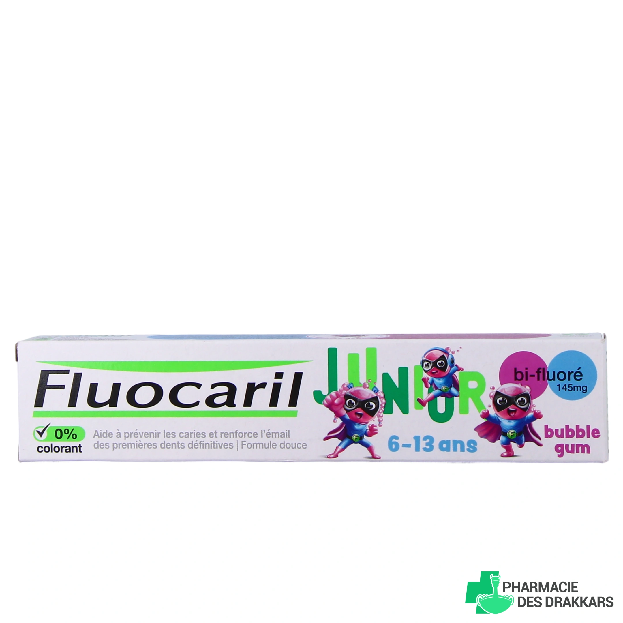 Le dentifrice bi-fluoré Fluocaril Junior est disponible au parfum Bubble Gum et au parfum Fruits Rouges : l'idéal pour faire du brossage des dents un moment agréable pour les enfants.