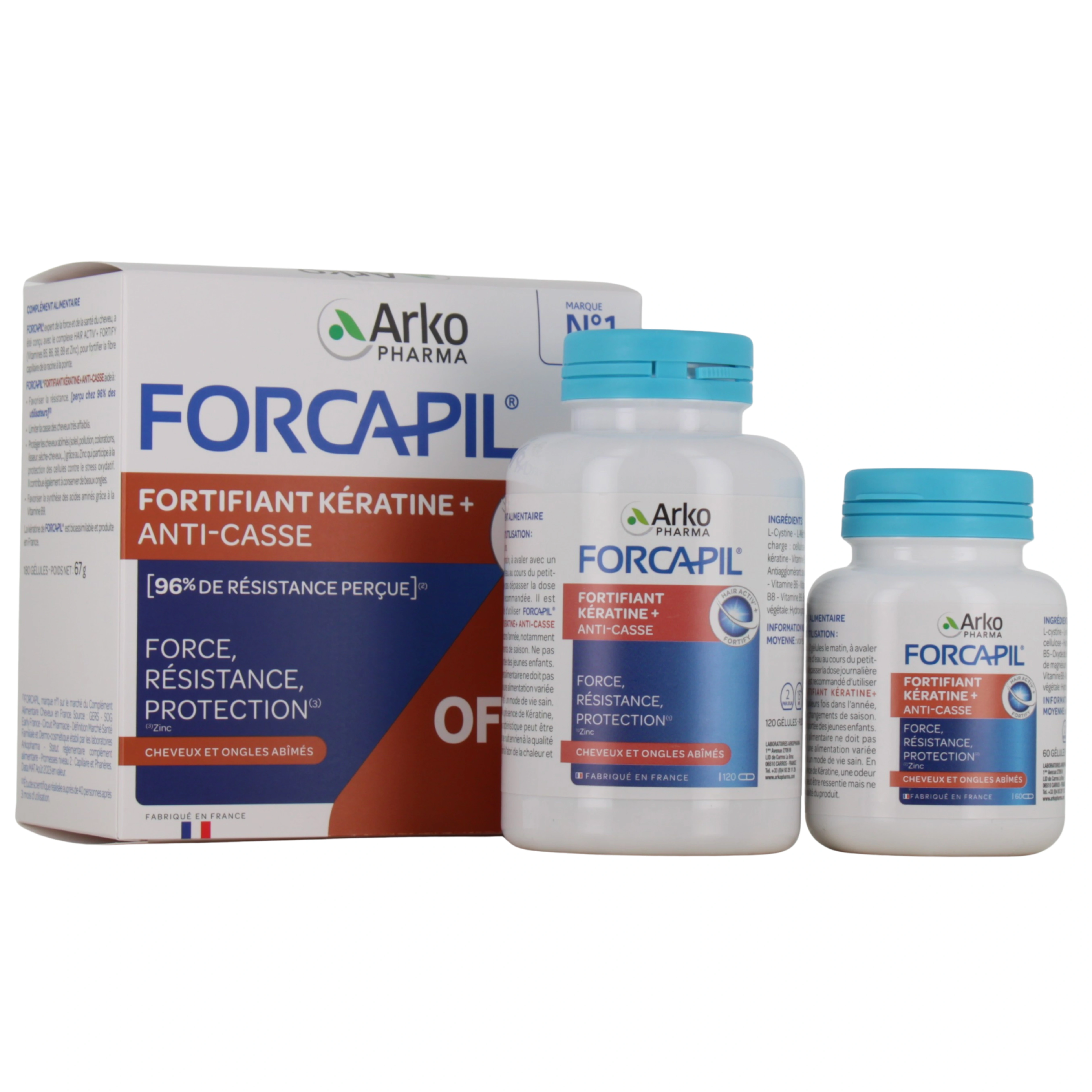 Forcapil Fortifiant Kératine+ de Arkopharma est un complément alimentaire qui apporte force, résistance et protection aux cheveux et aux ongles abîmés.