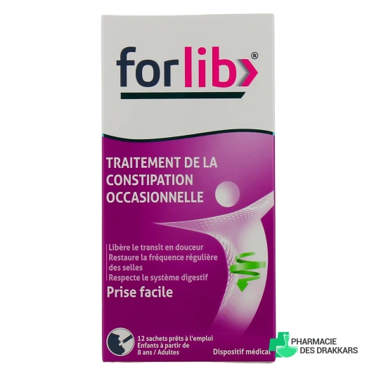 Forlib est un dispositif médical sous forme de solution buvable en sachets, et destiné au traitement de la constipation occasionnelle chez l'adulte et l'enfant âgé de plus de 8 ans.