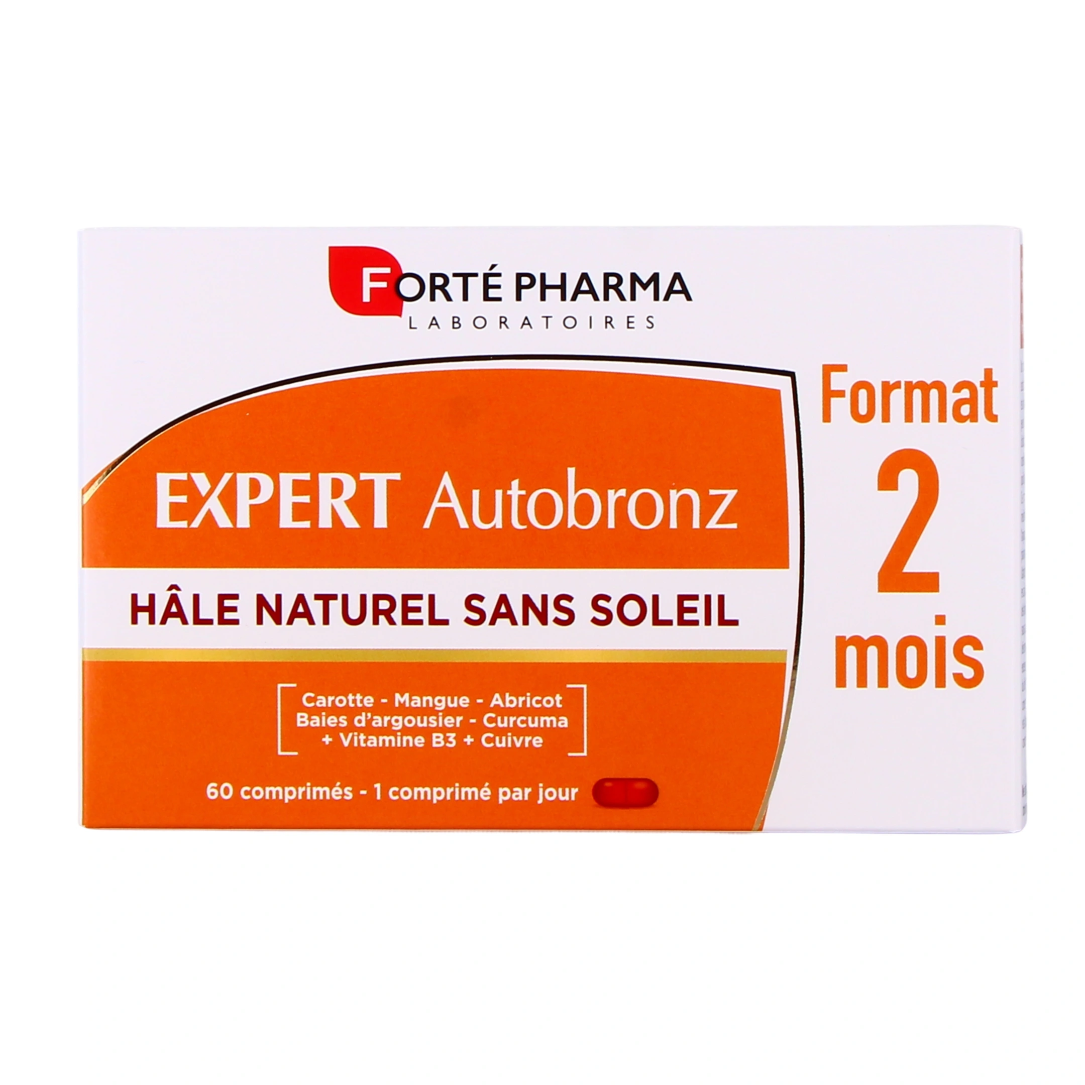 Expert AutoBronz est un complément alimentaire de Forté Pharma dont la composition regroupe des pigments naturels et des caroténoïdes afin de favoriser un hâle naturel sans soleil.