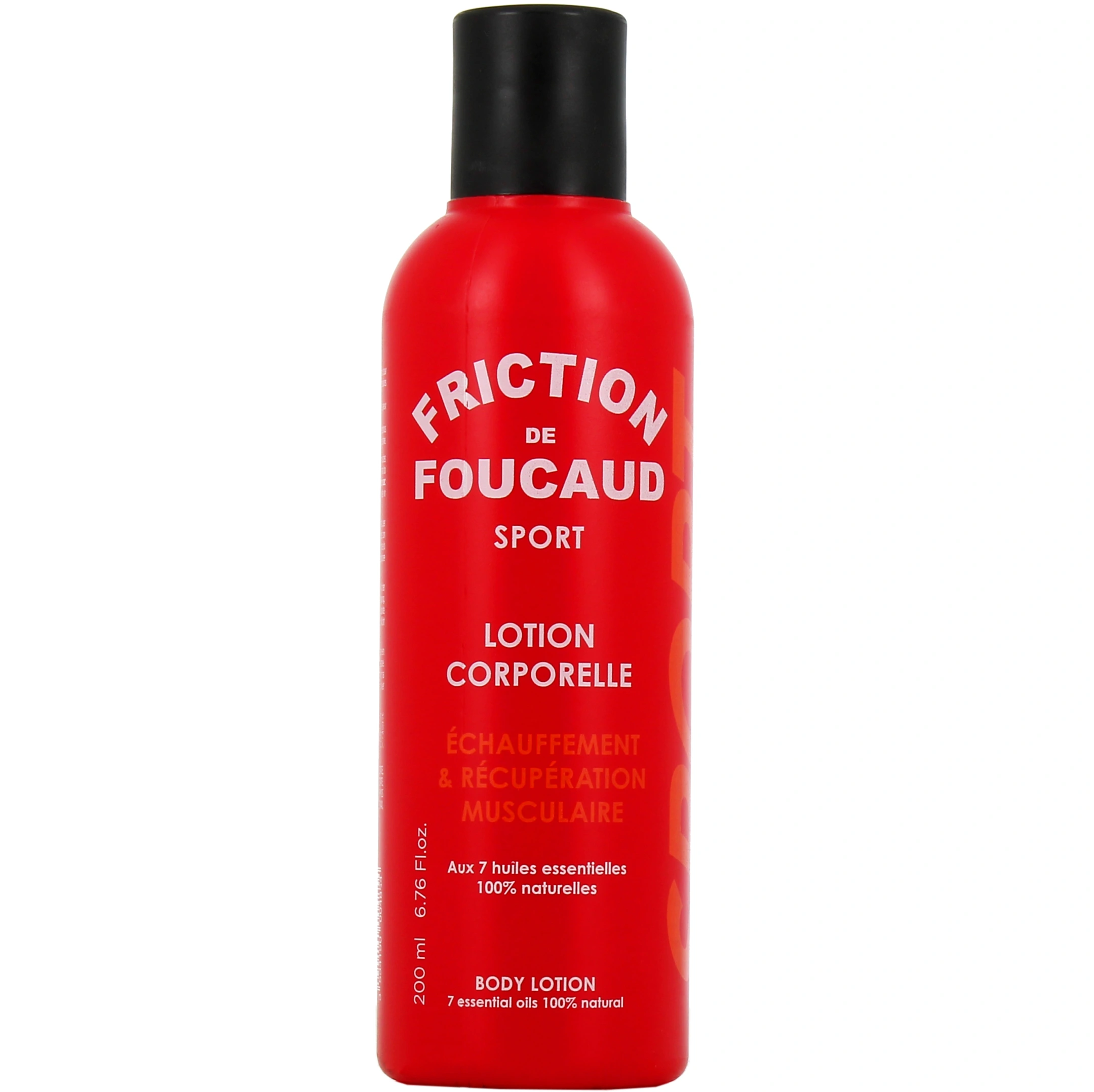 Présentation proposée pour la lotion corporelle Friction de Foucaud Sport sur la pharmacie en ligne des Drakkars : flacon de 200ml.