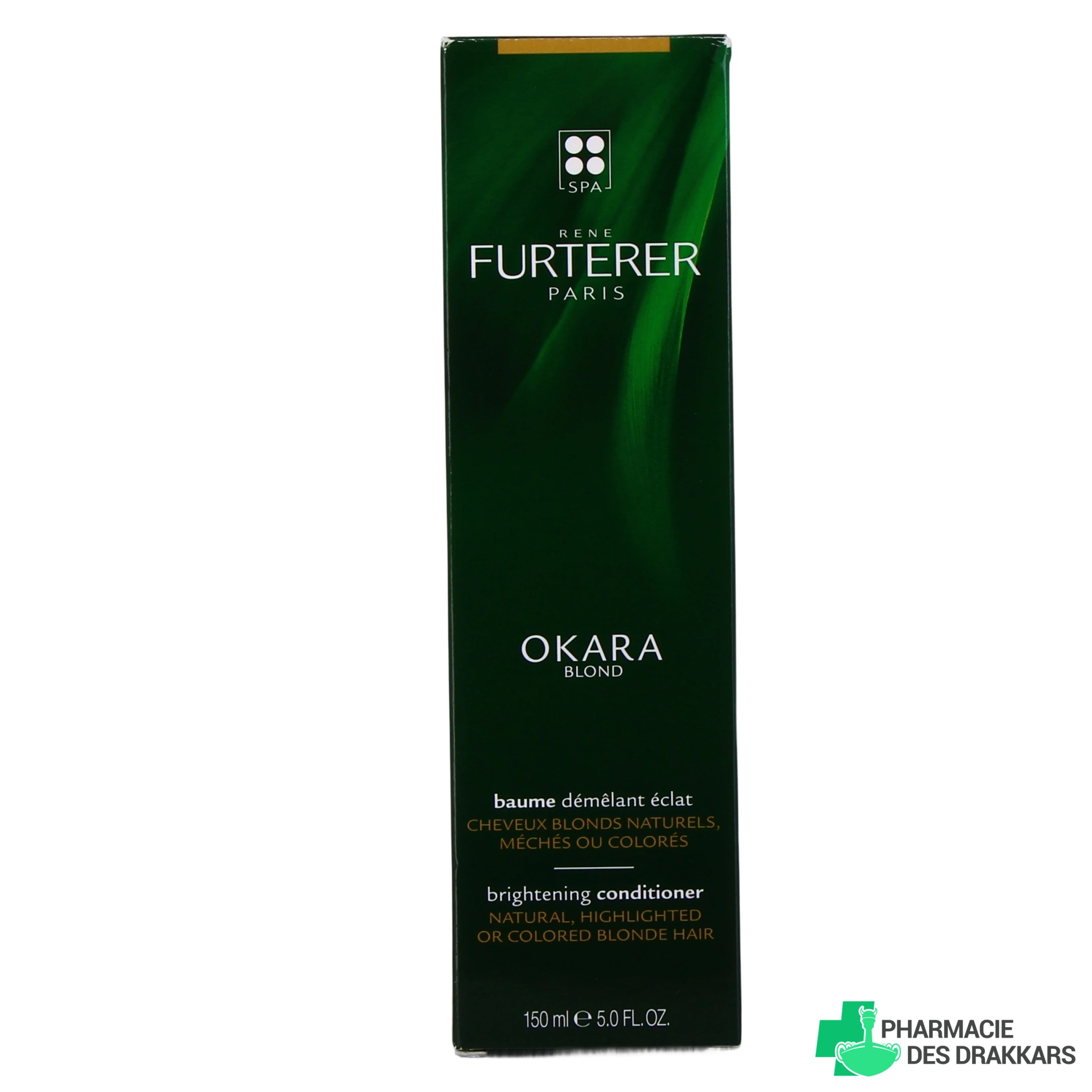 Conditionnements disponibles à la Pharmacie des Drakkars pour le baume démêlant éclat Okara Blond René Furterer : Tube de 30 ml - Tube de 150 ml.