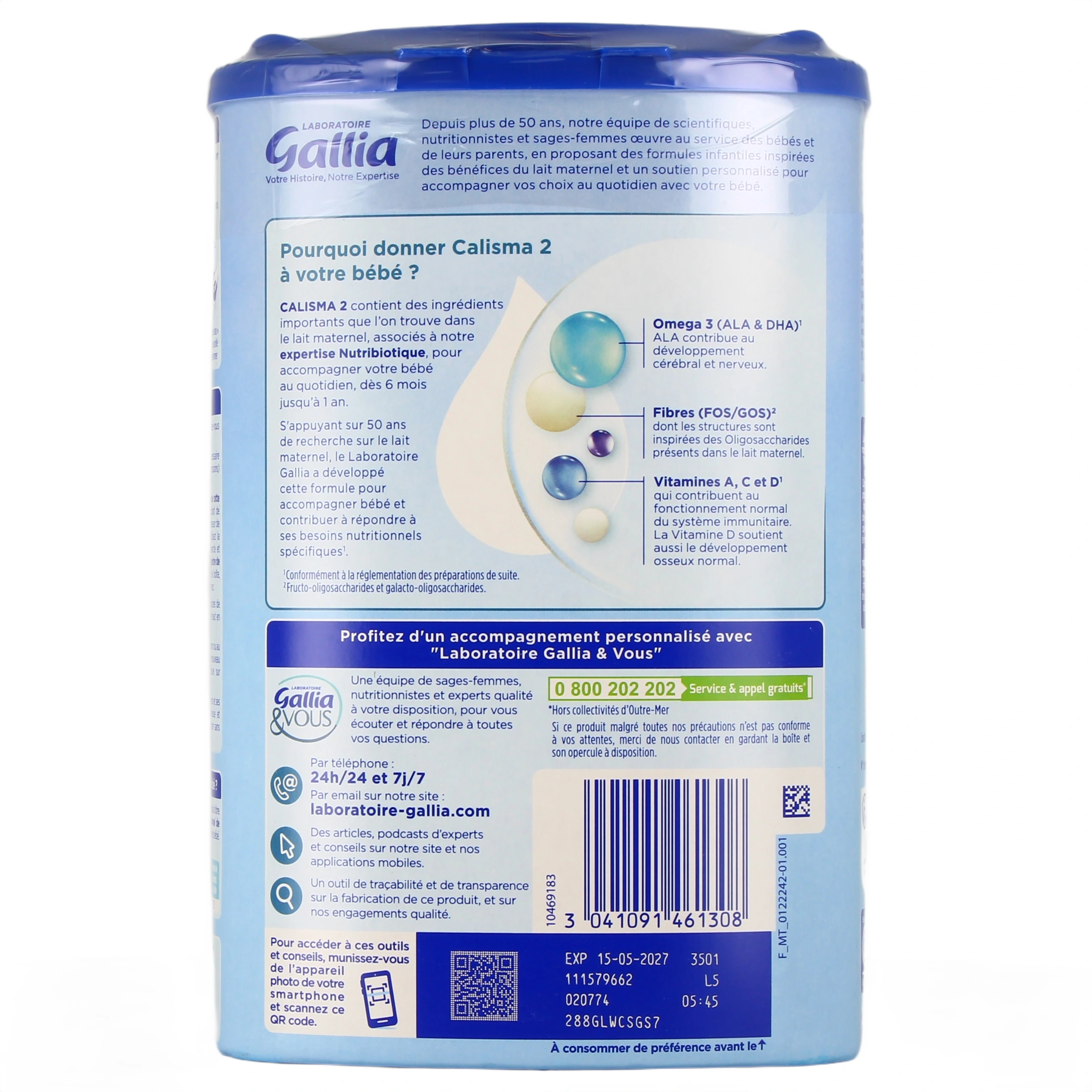 Le lait Calisma 2 de Gallia est un lait de suite 2ème âge formulé sans huile de palme, sans conservateur et sans arôme, conformément à la réglementation des préparations de suite.