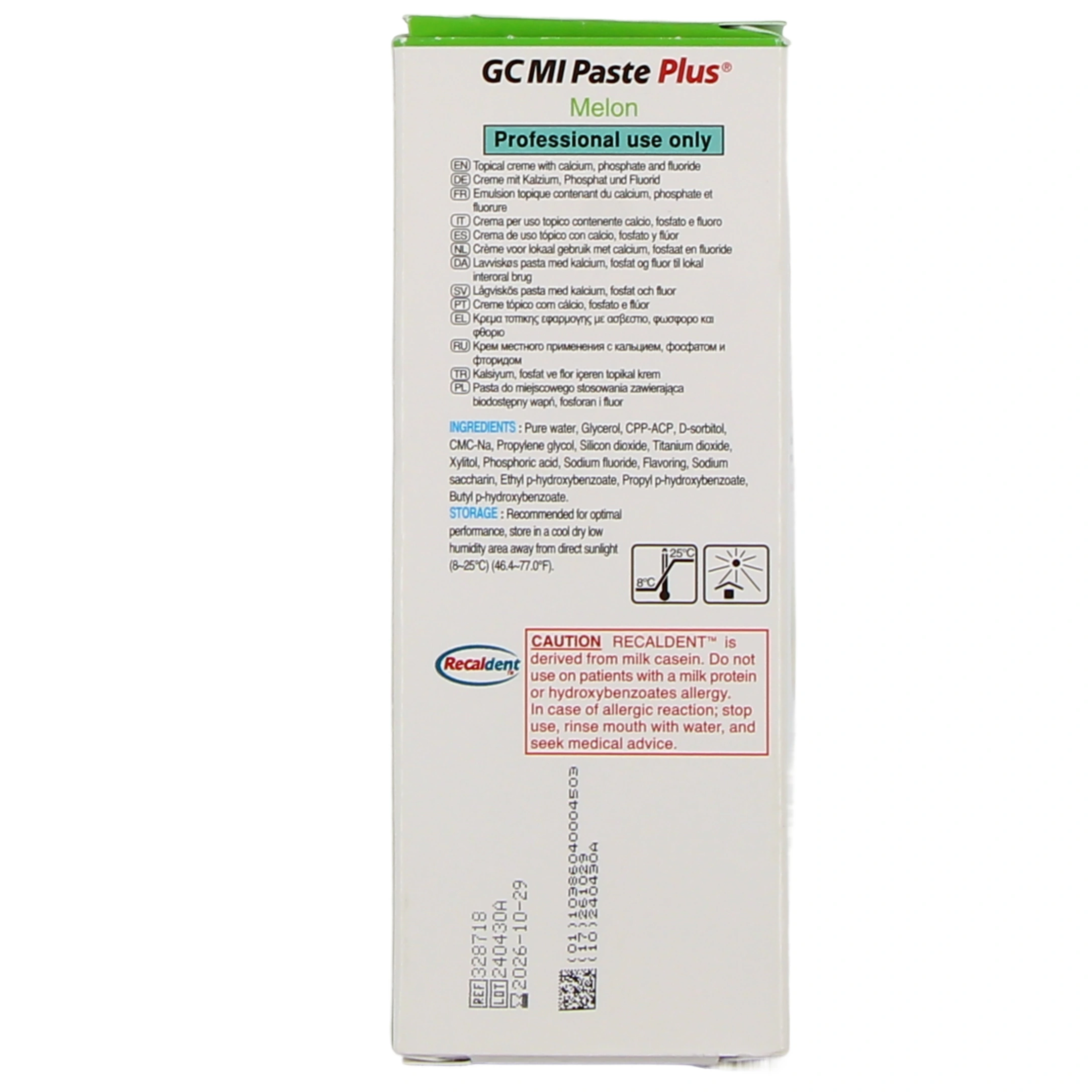 - Usage professionnel : après toute procédure dentaire, appliquez Mi Paste Plus à l'aide d'une brossette ou d'un doigt ganté.