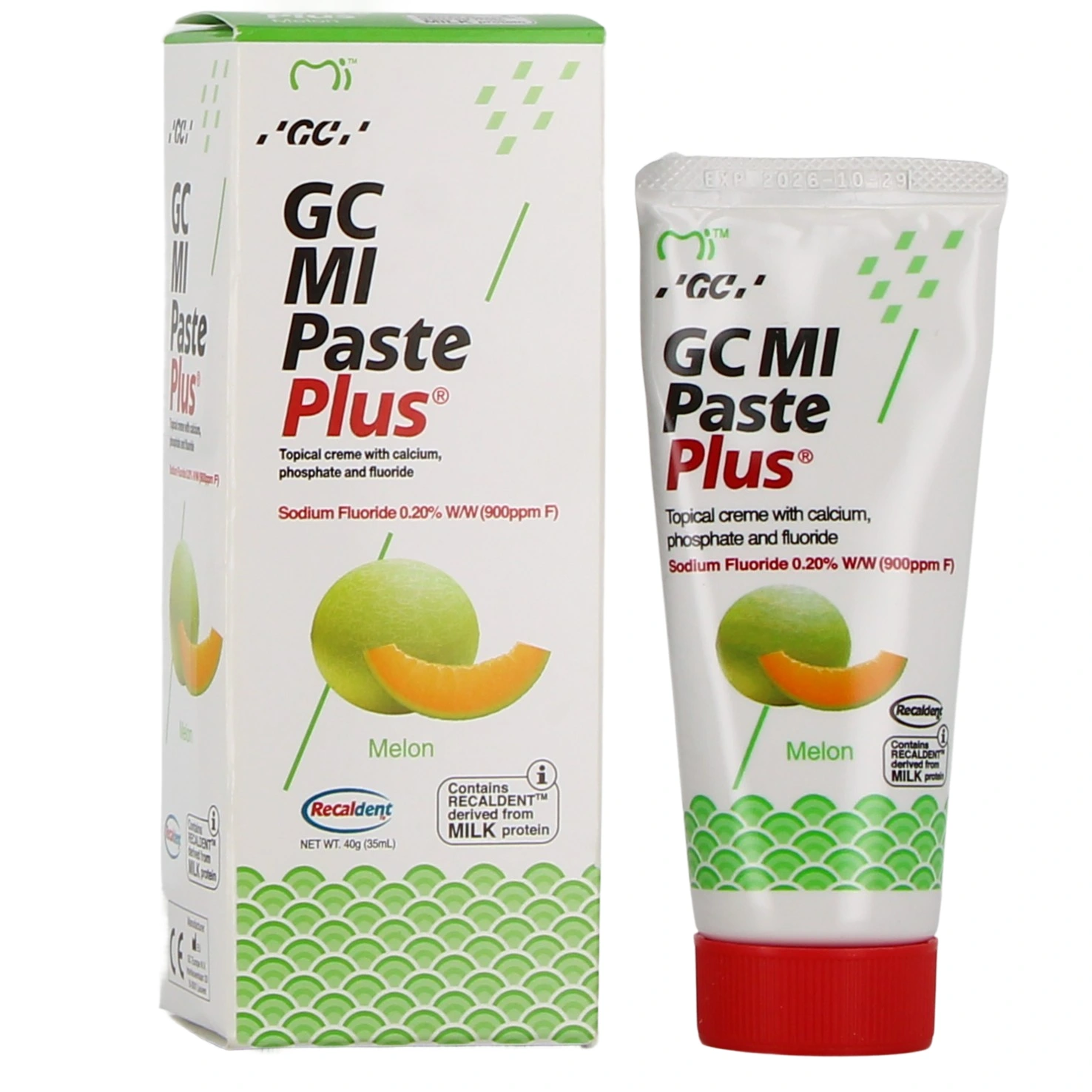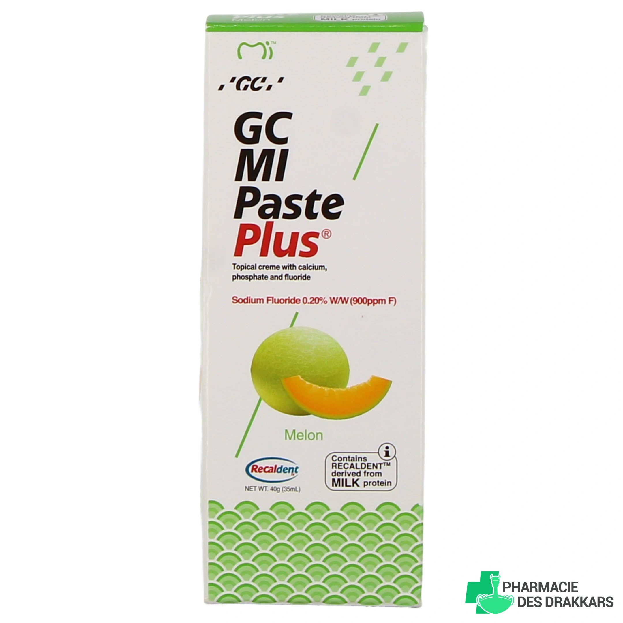Présentation proposée pour GC Mi Paste Plus sur notre pharmacie en ligne : Tube de 40 g, vanille, melon ou tutti frutti.