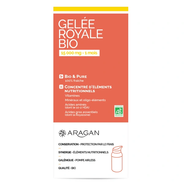 Ne pas dépasser la dose journalière recommandée. À conserver de préférence au frais et à l’abri de la chaleur. Tenir hors de portée des jeunes enfants. Ce complément alimentaire ne se substitue pas à une alimentation variée et équilibrée ni à un mode de vie sain. Les personnes sous contrôle médical doivent demander conseil à leur pharmacien ou à leur médecin. Ne convient pas aux personnes allergiques aux produits de la ruche. Pour mieux voyager, la gelée royale d’ARAGAN est importée, congelée sur les lieux de production. Ne pas recongeler.