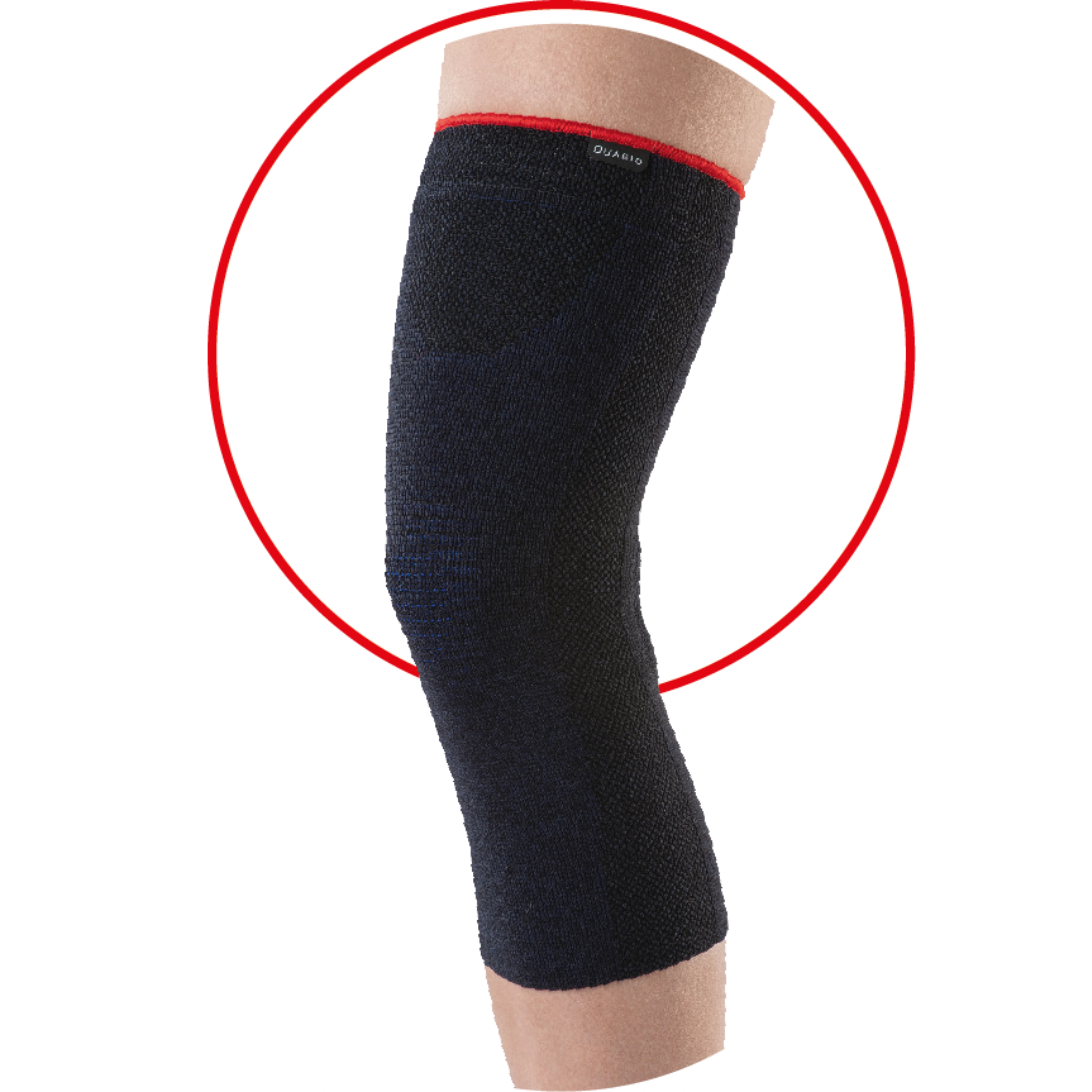 - Un système antiglisse efficace, garantissant que la genouillère reste parfaitement en place sans s’enrouler ni glisser, y compris lors de mouvements dynamiques.