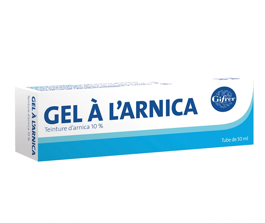 Le gel à l’arnica de Gifrer est destiné au soin des coups, des bosses, des bleus et de toutes les petites contusions pouvant survenir dans la vie de tous les jours, mais aussi en cas de courbatures ou de douleurs articulaires. Le principe actif de ce gel est une teinture d'arnica (une plante réputée pour ses vertus anti-inflammatoires), concentrée à 10 g pour 100 g de gel.