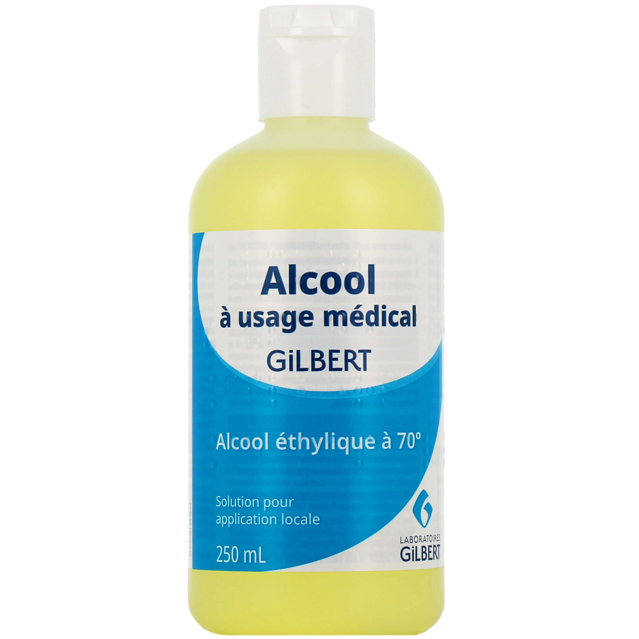 Présentation disponible sur notre pharmacie en ligne pour Gilbert Alcool Ethylique à 70° : flacon de 250 ml.